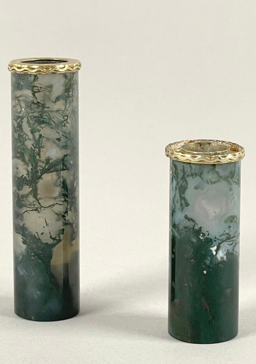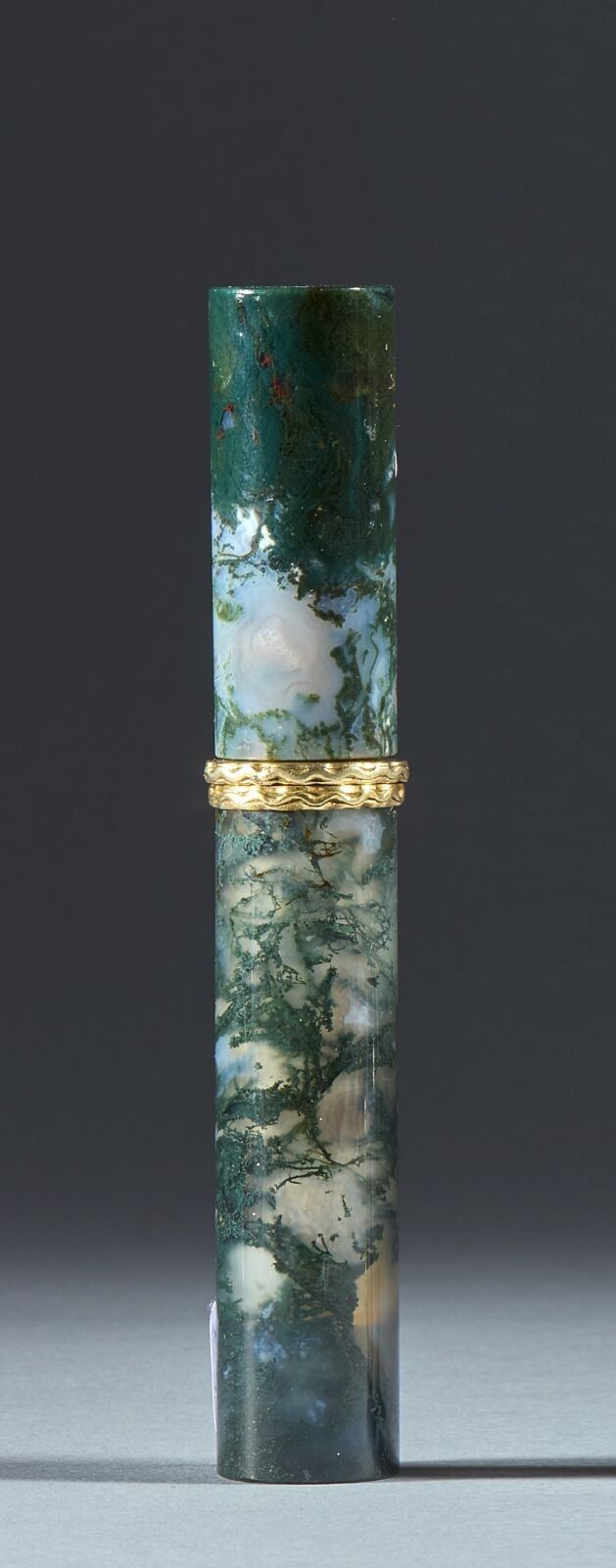 Blood jasper tubular case with gilt metal mount.