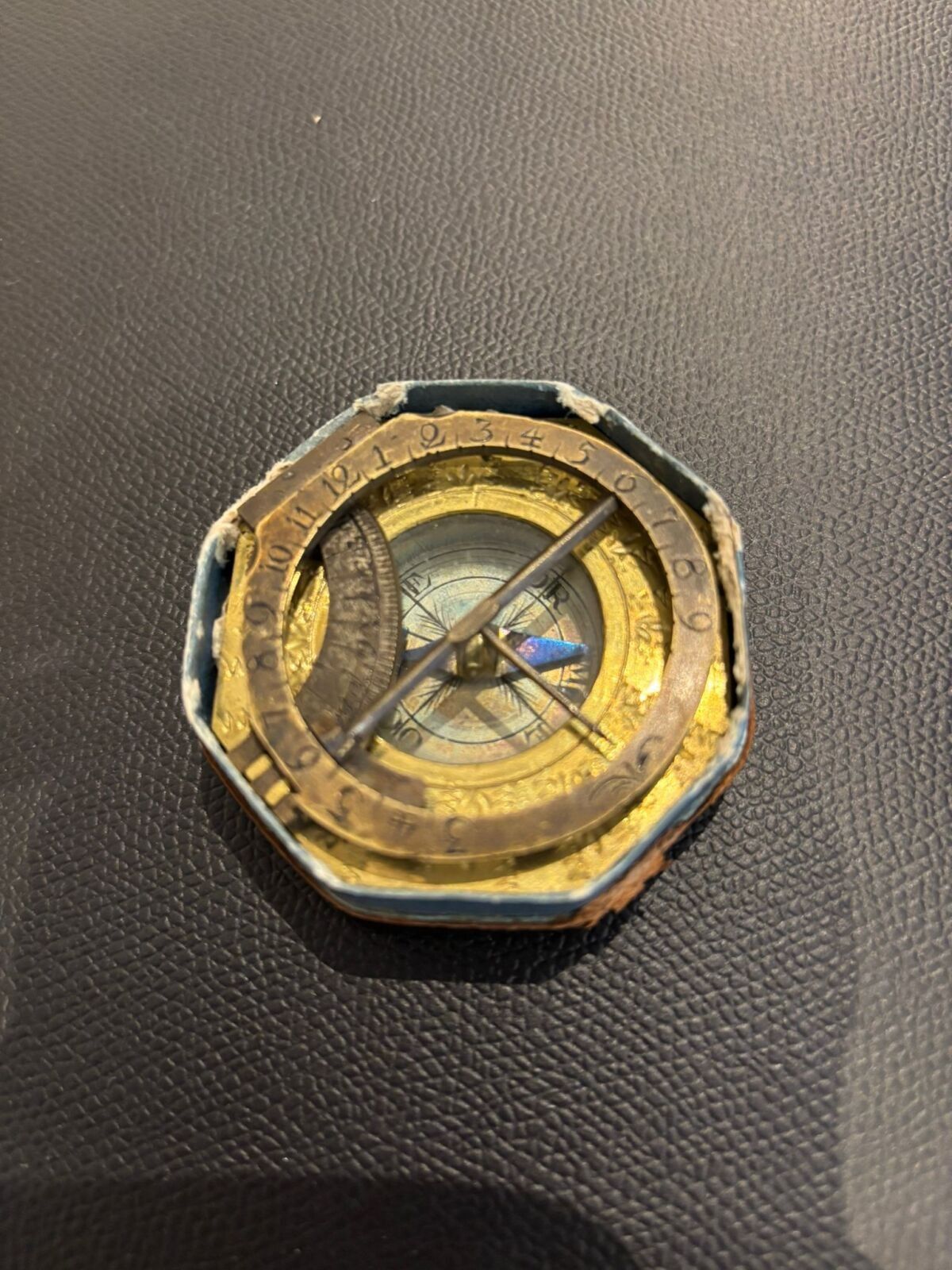 Premium Portable equatorial sundial with engraved brass compass. Bas…