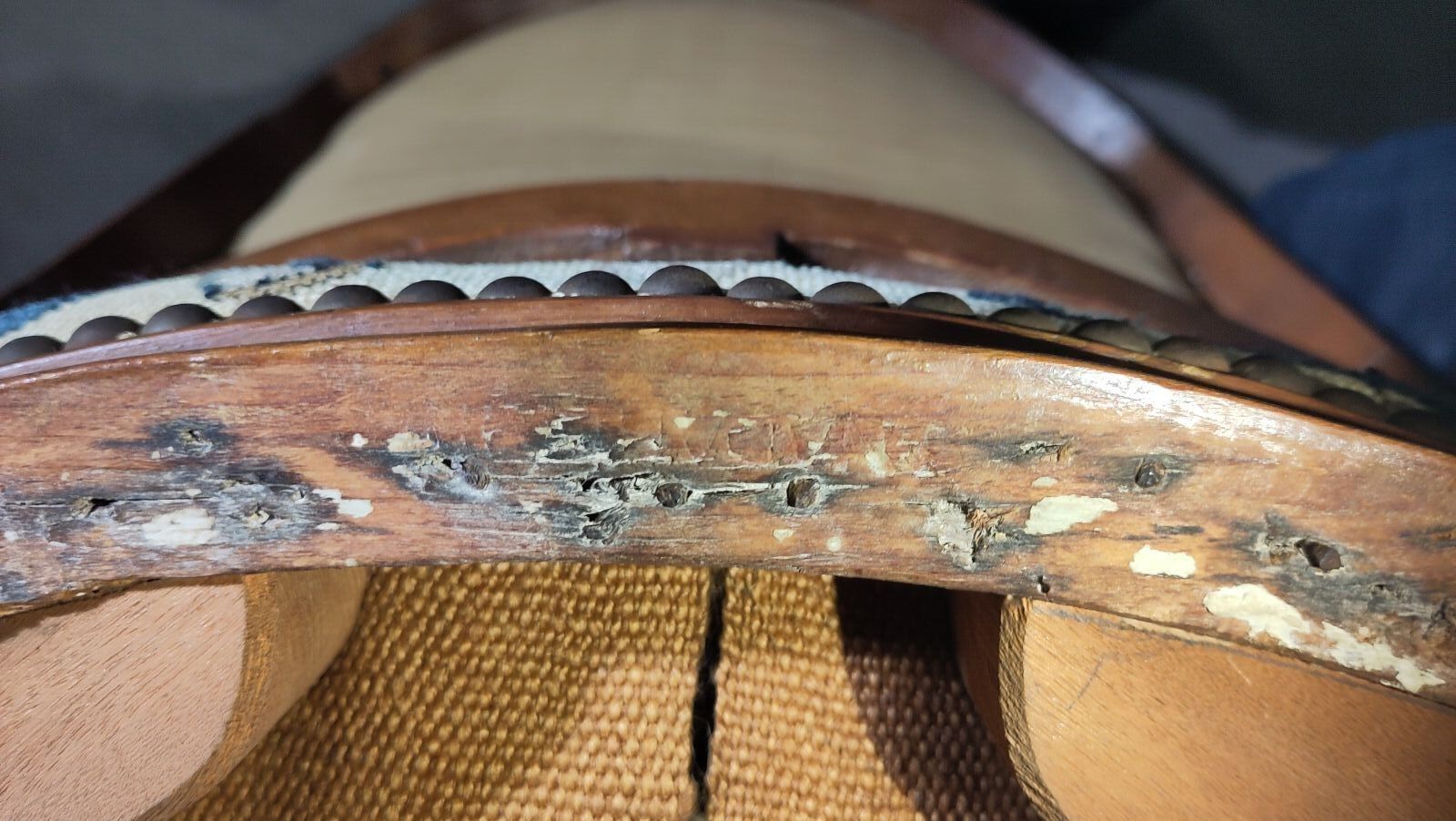 Stamped by Jean René Nadal l'Ainé, carpenter received master in 1756.
