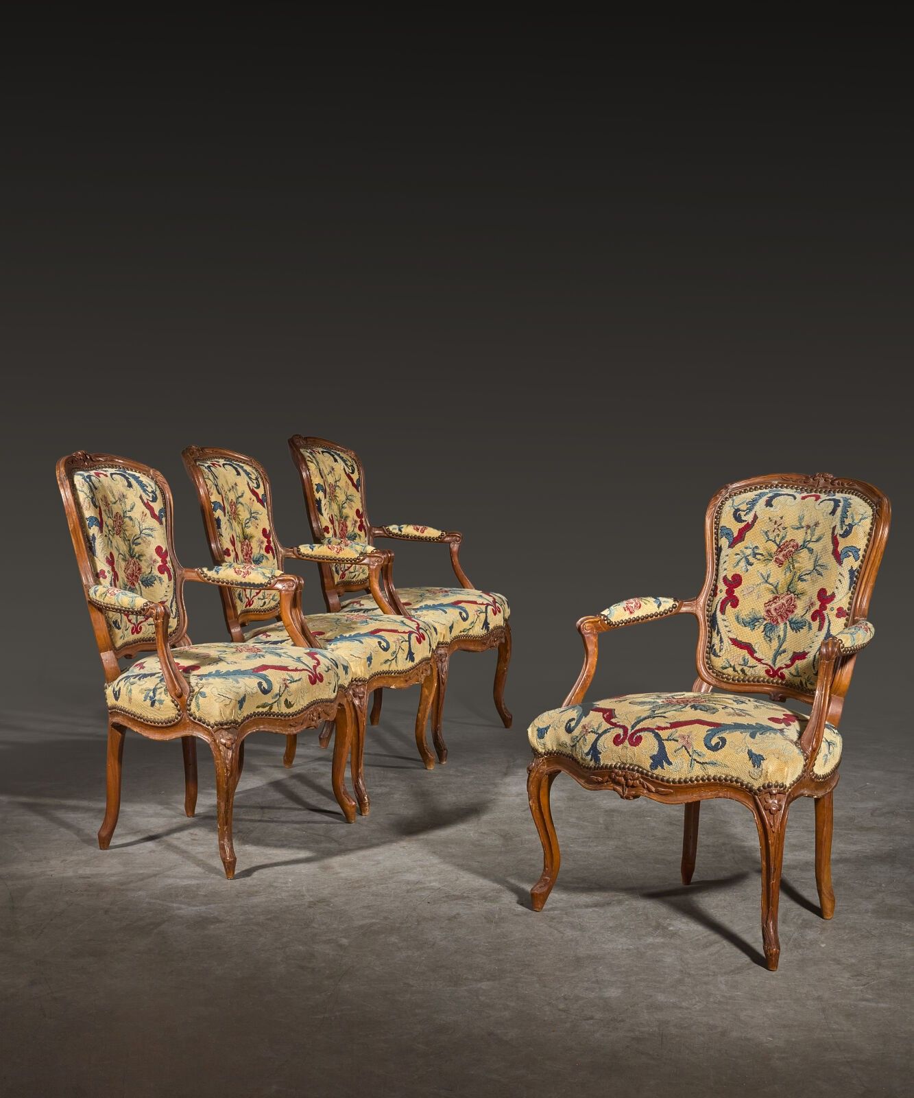 Premium A suite of four moulded and carved beech armchairs with cabr…