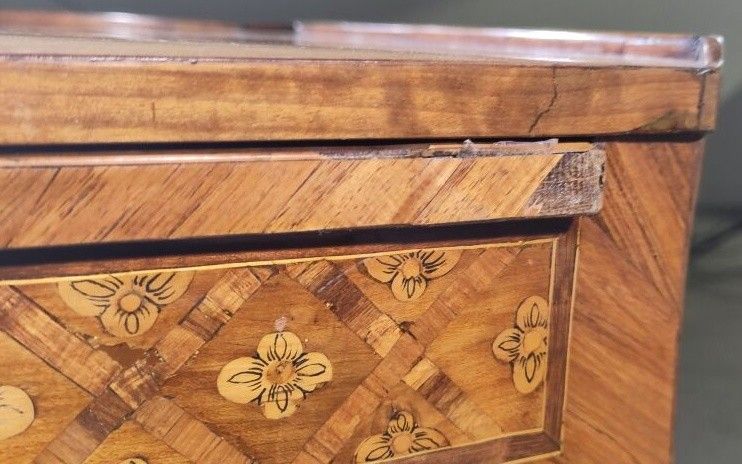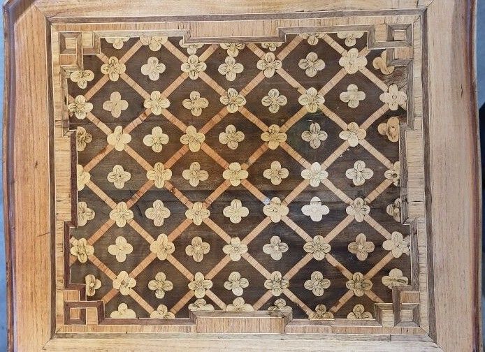 Premium Small table in marquetry of trellises and rosettes, opening …
