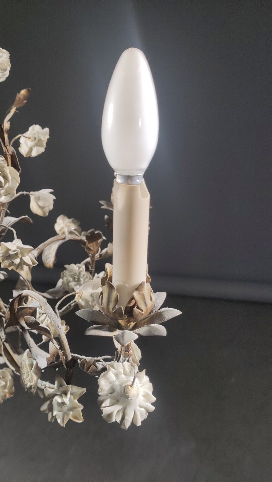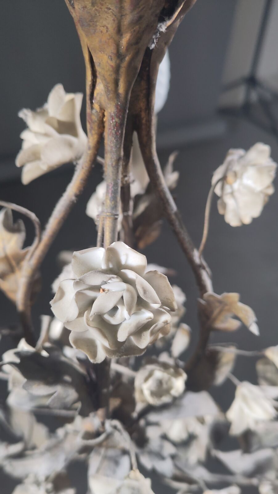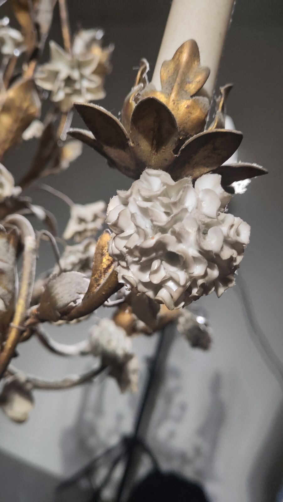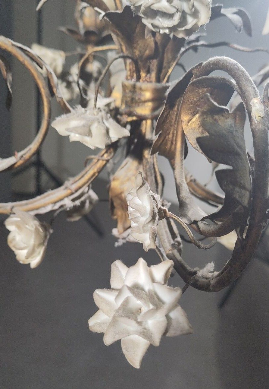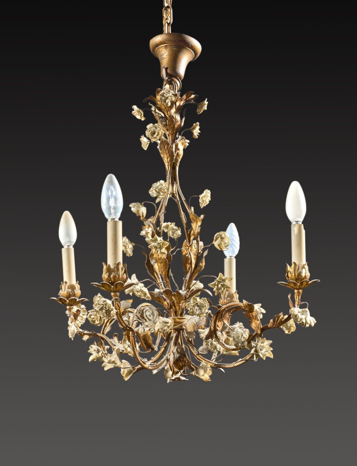Premium An ormolu chandelier with four arms, decorated with polychro…