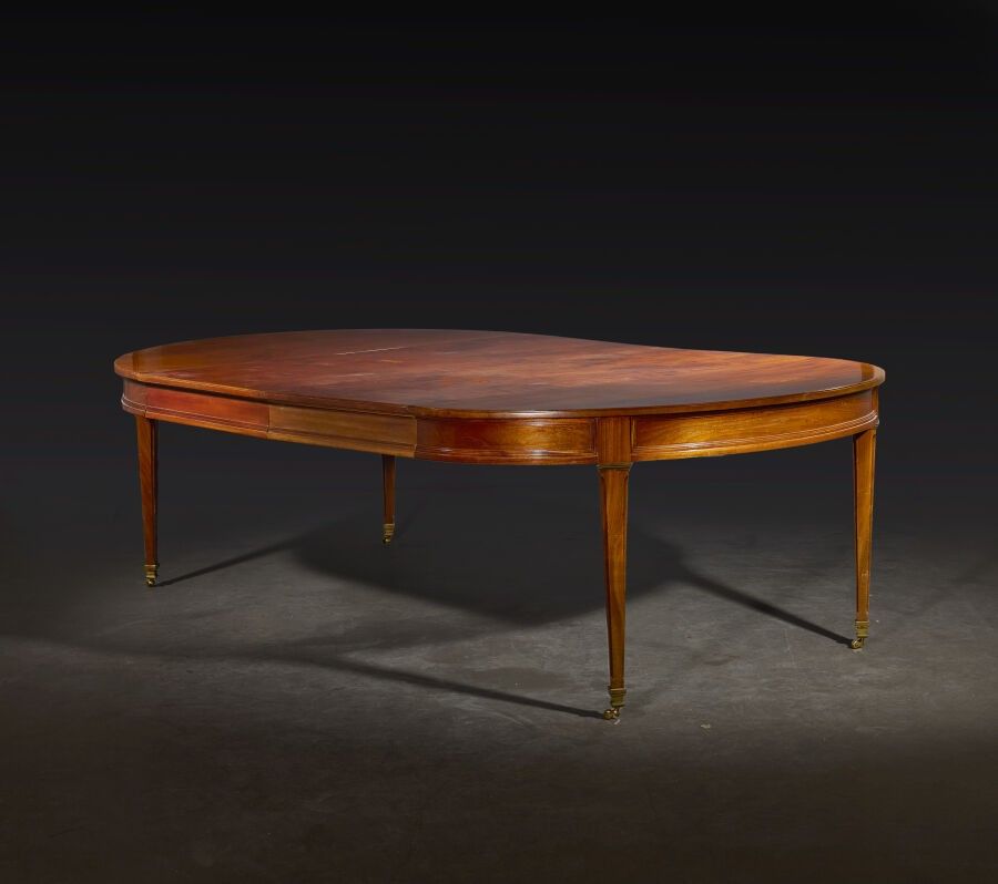 Premium A mahogany and gilt bronze fillet dining table on sheath leg…