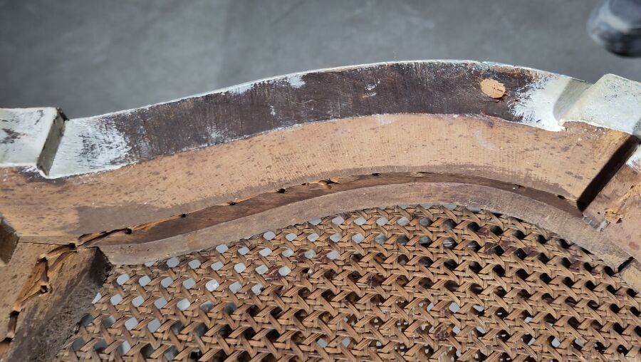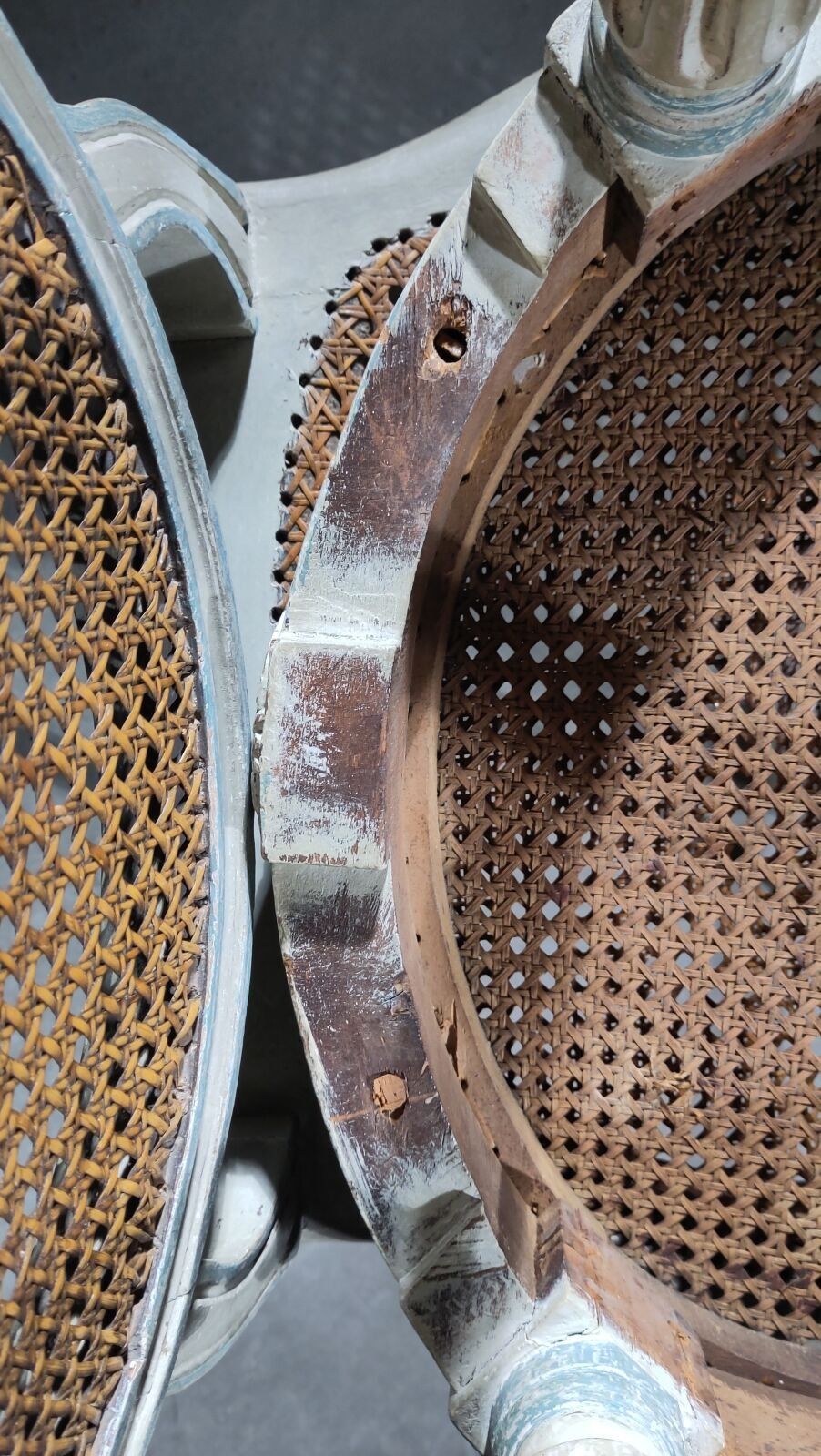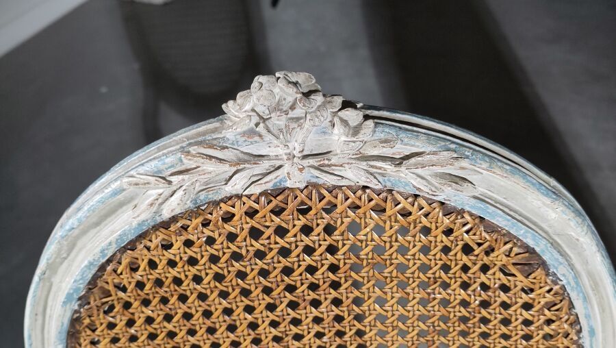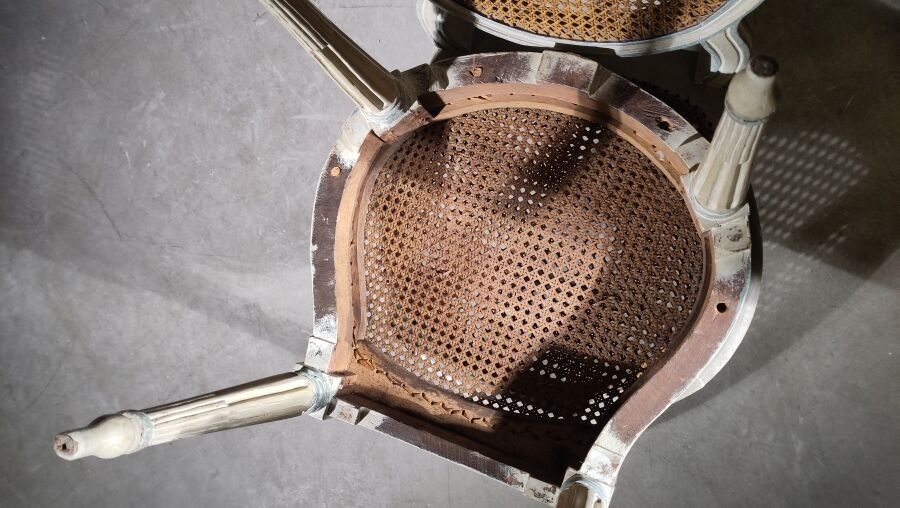 A pair of moulded, carved and painted wooden caned chairs wi…