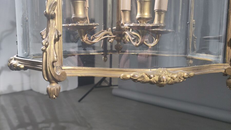 Premium A five-sided ormolu lantern in the form of a movement, decor…