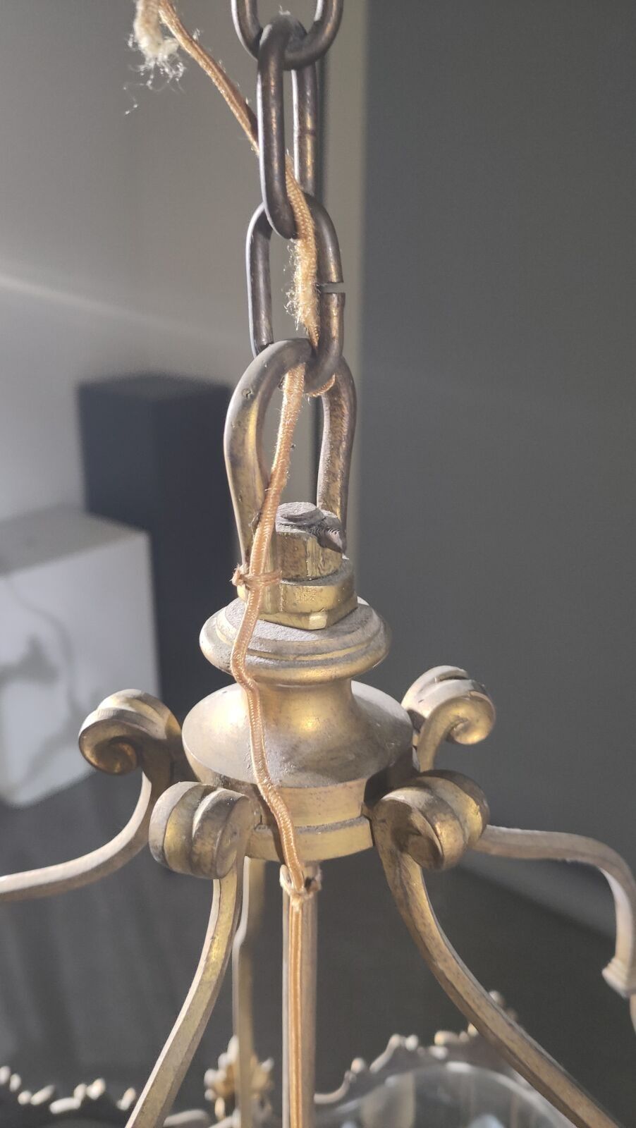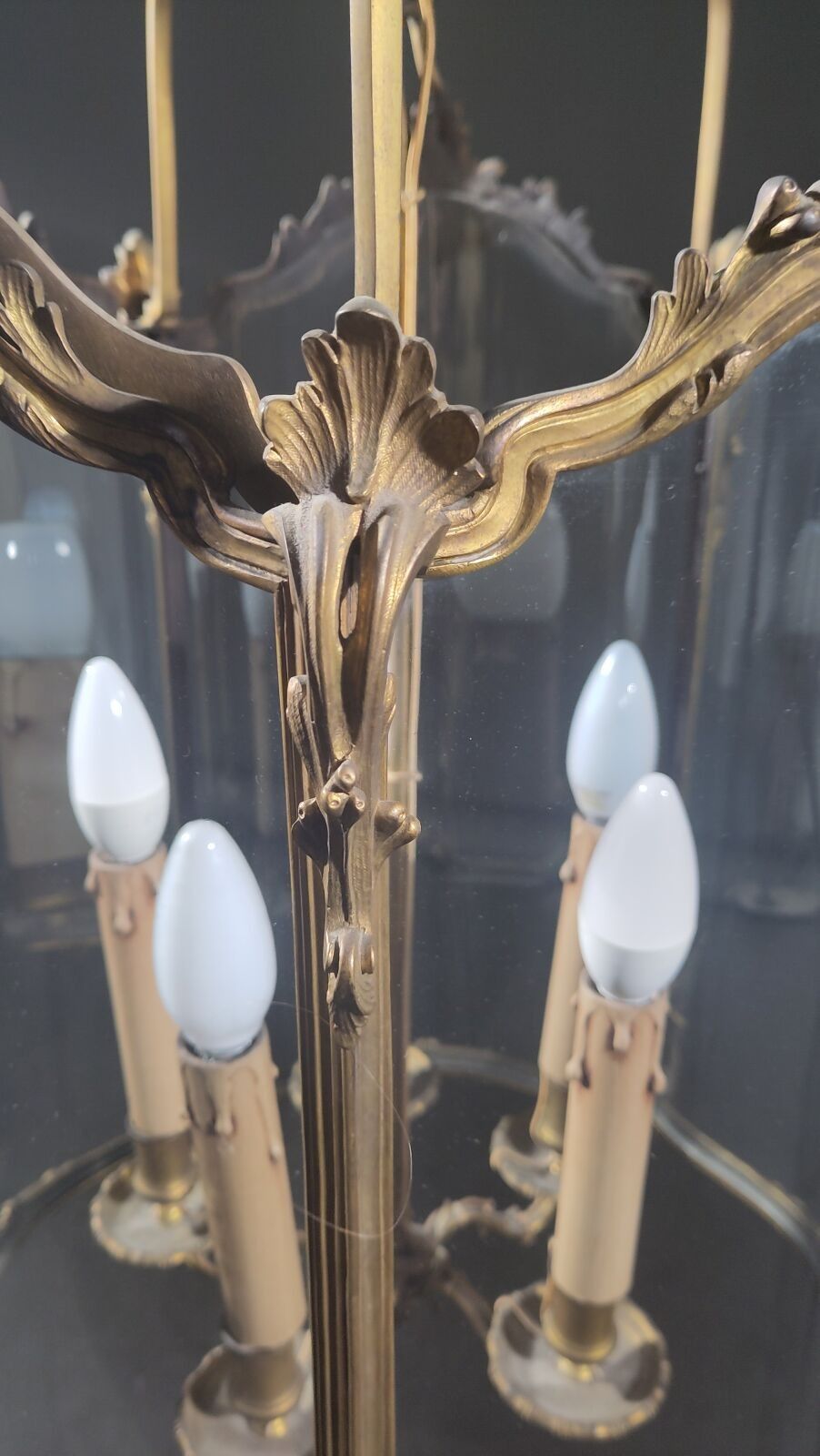 A five-sided ormolu lantern in the form of a movement, decorated with foliage, with four arms.