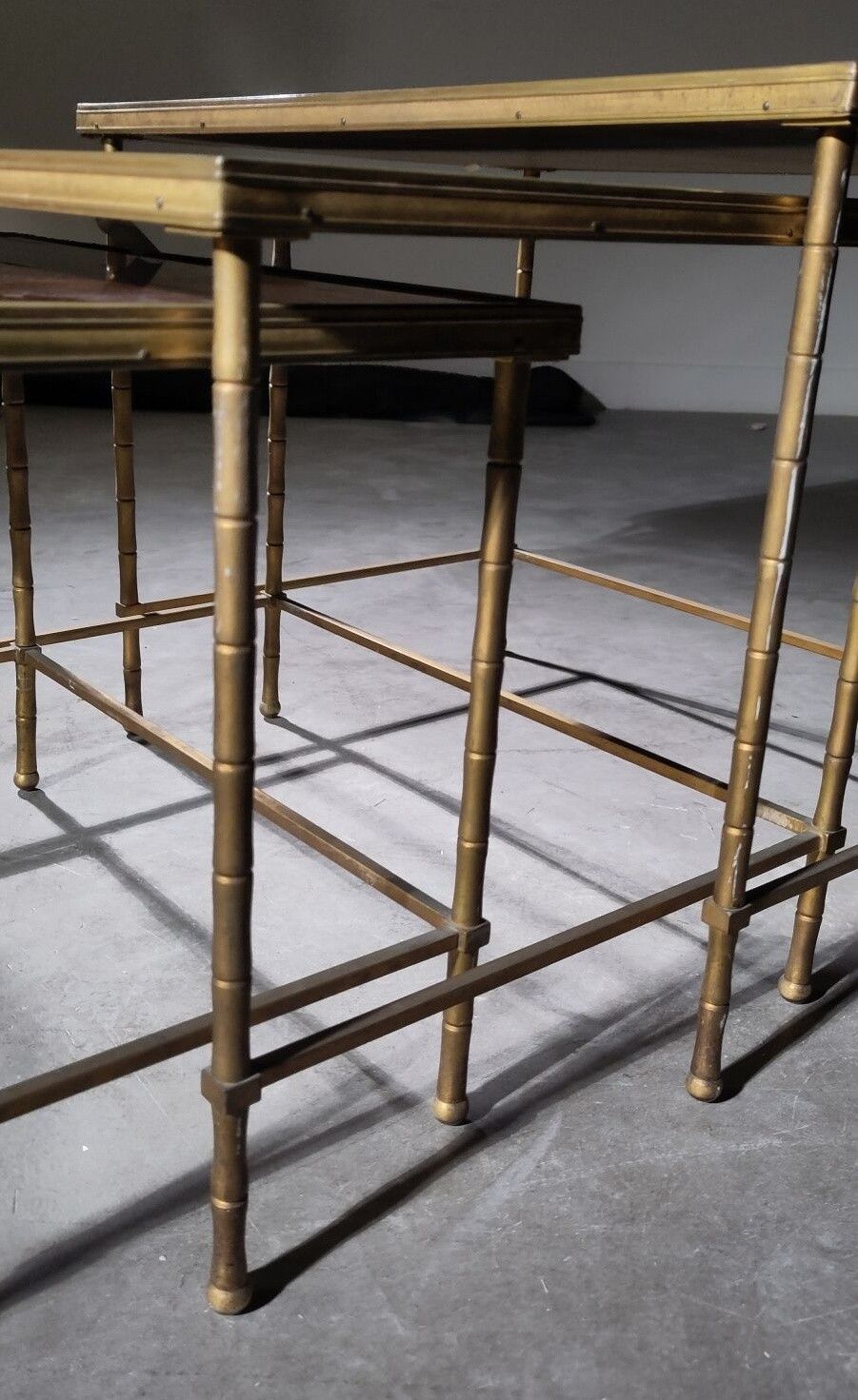 Set of three nesting tables with gilded brass imitation bamb…