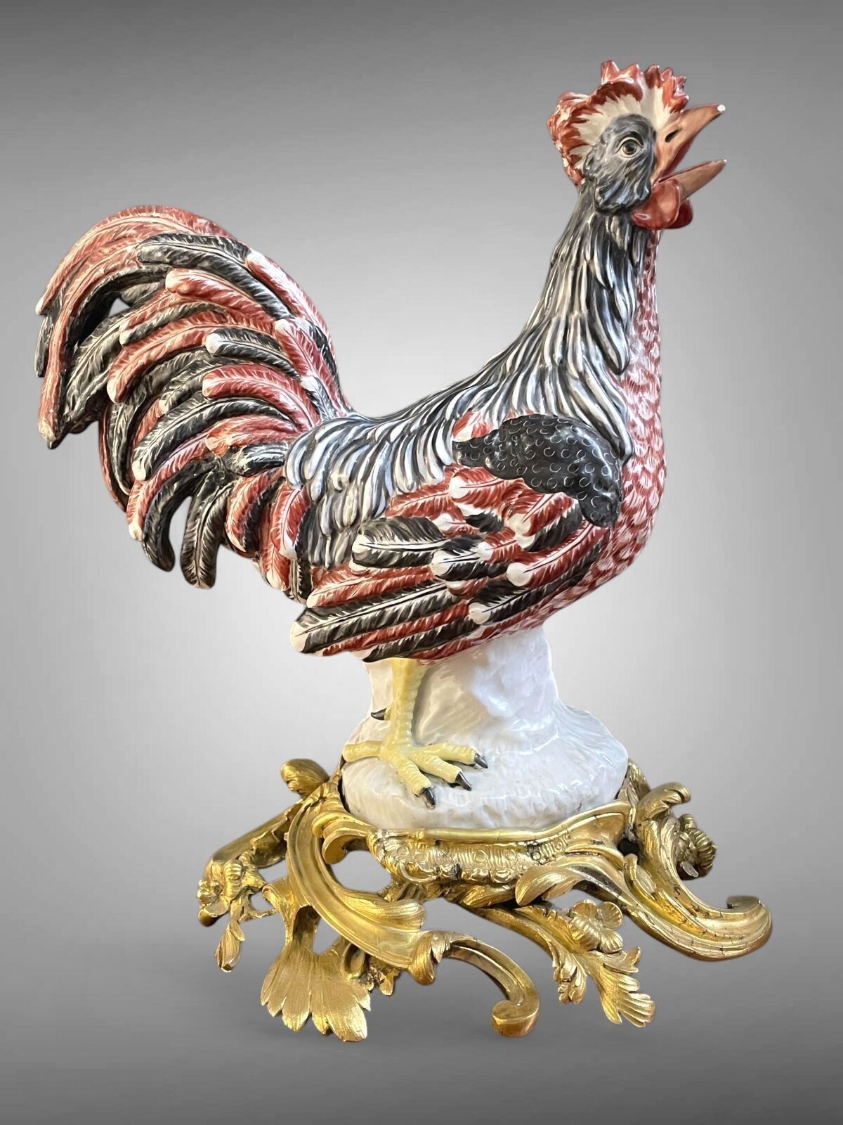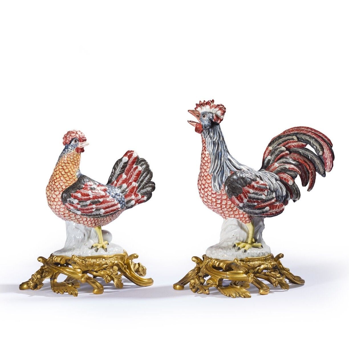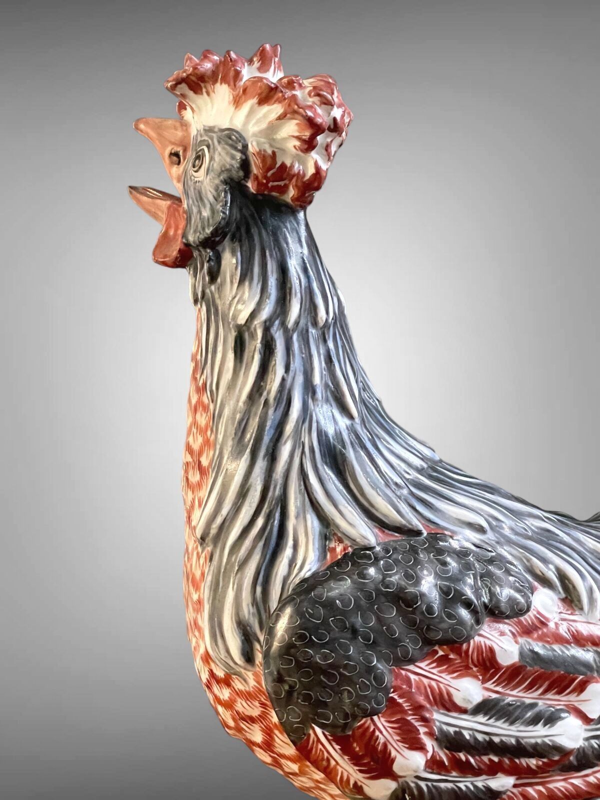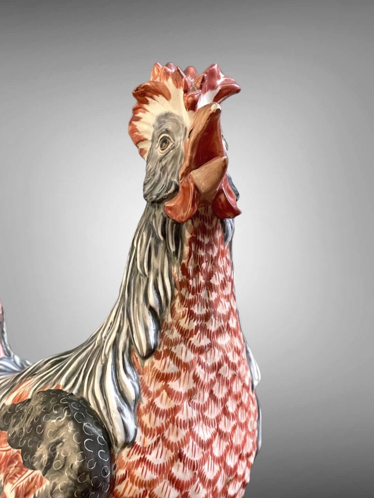 Premium Germany Porcelain rooster and hen with red and black plumage…