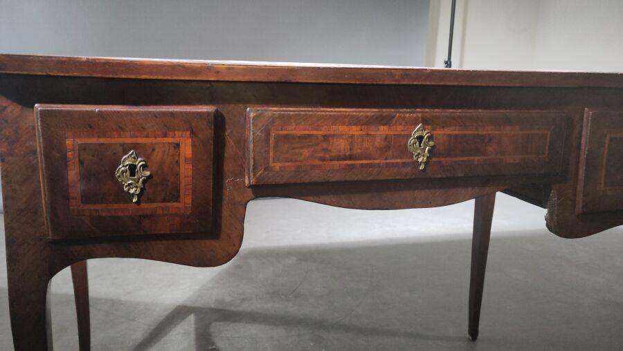 Walnut veneered desk opening to three drawers, with two slid…