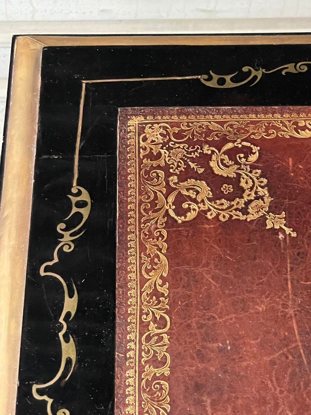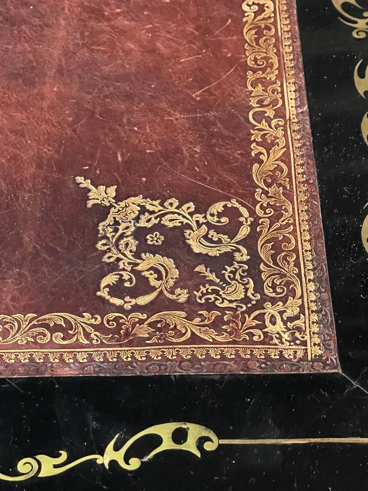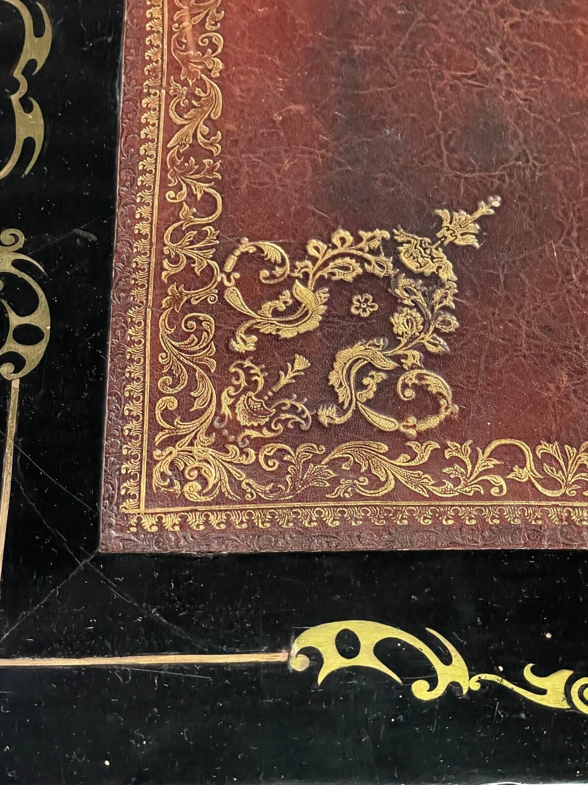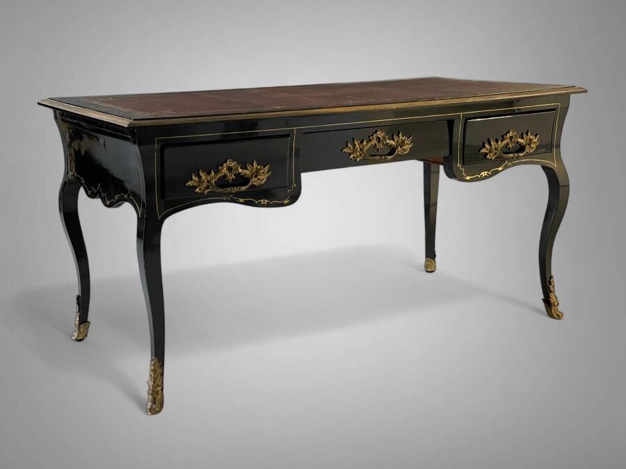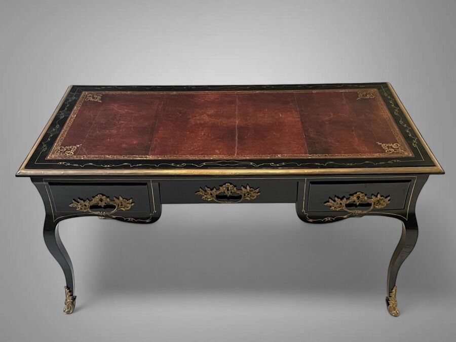 Premium A blackened wood, brass and gilt bronze inlaid flat desk wit…