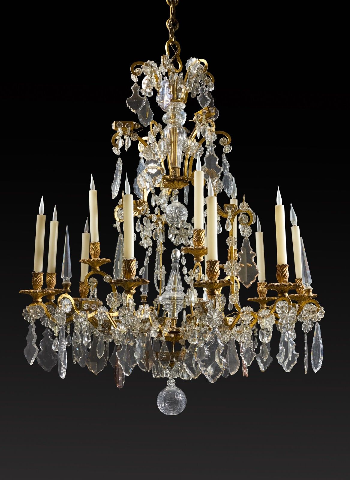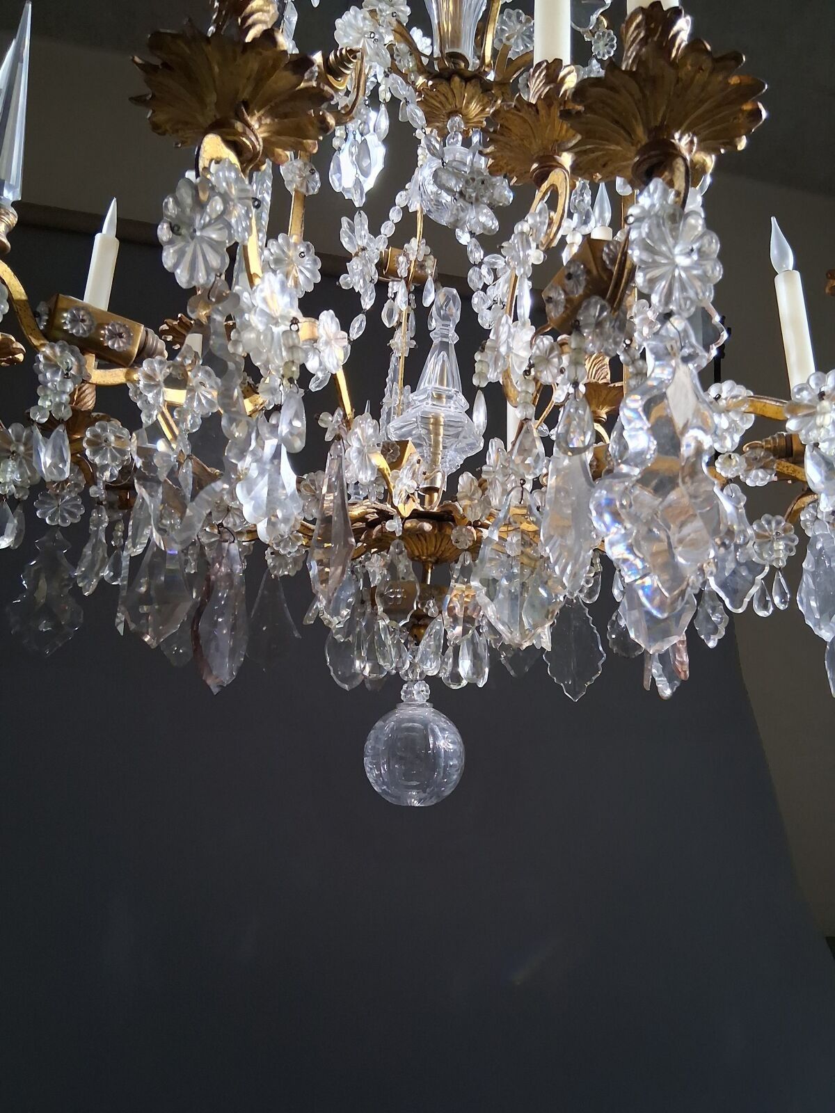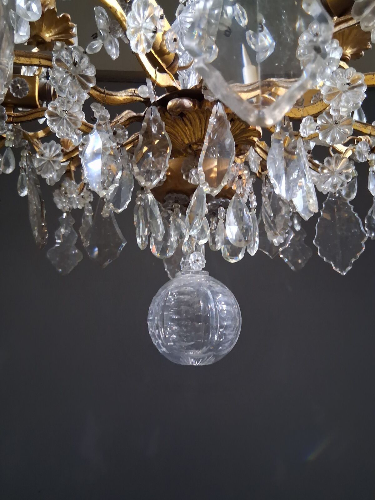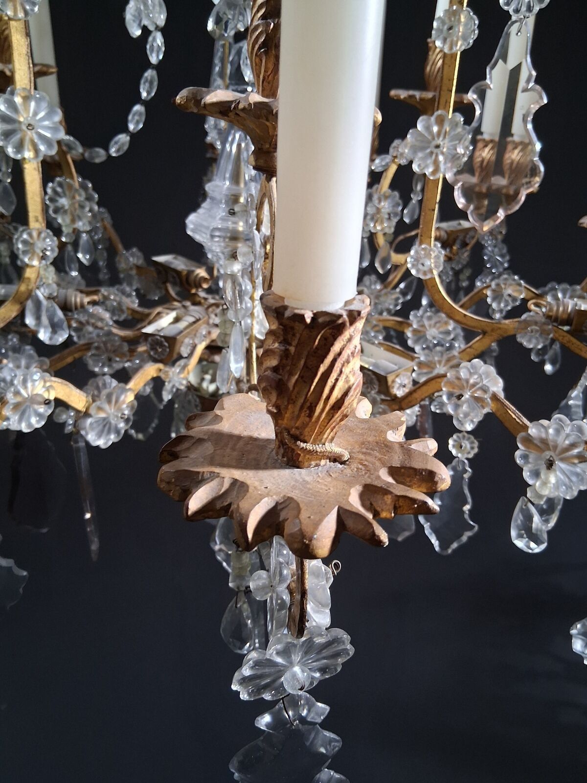 Premium A large chandelier in gilt iron, gilt wood and cut glass, wi…