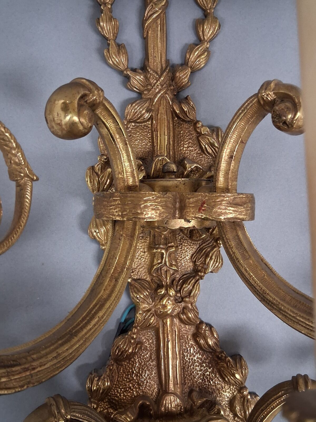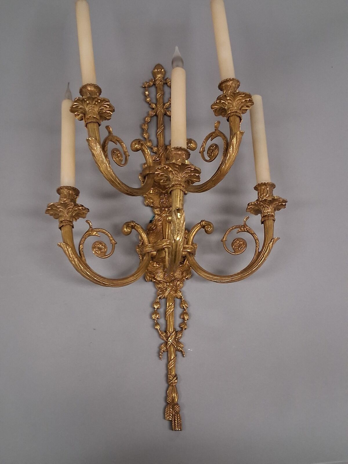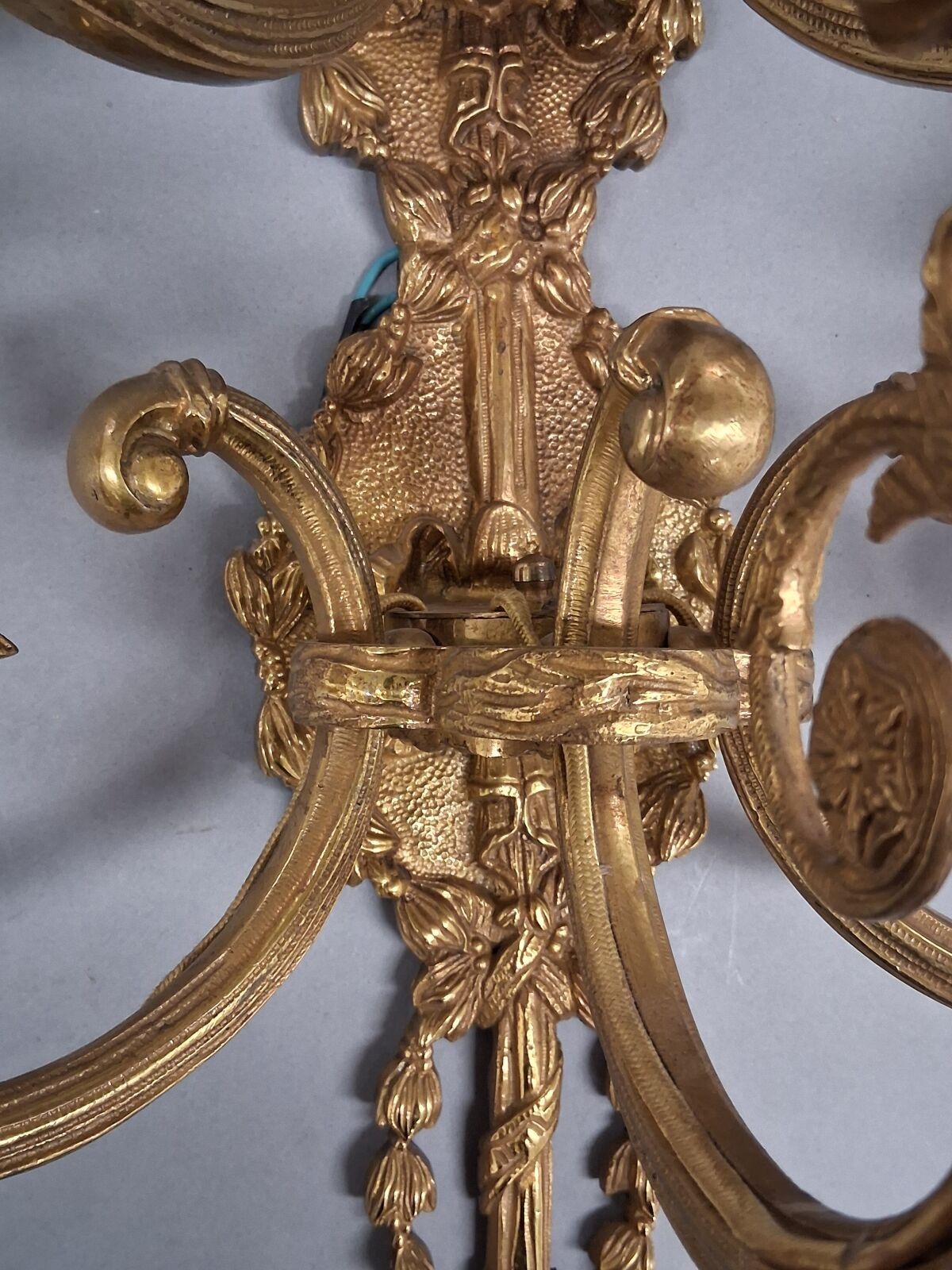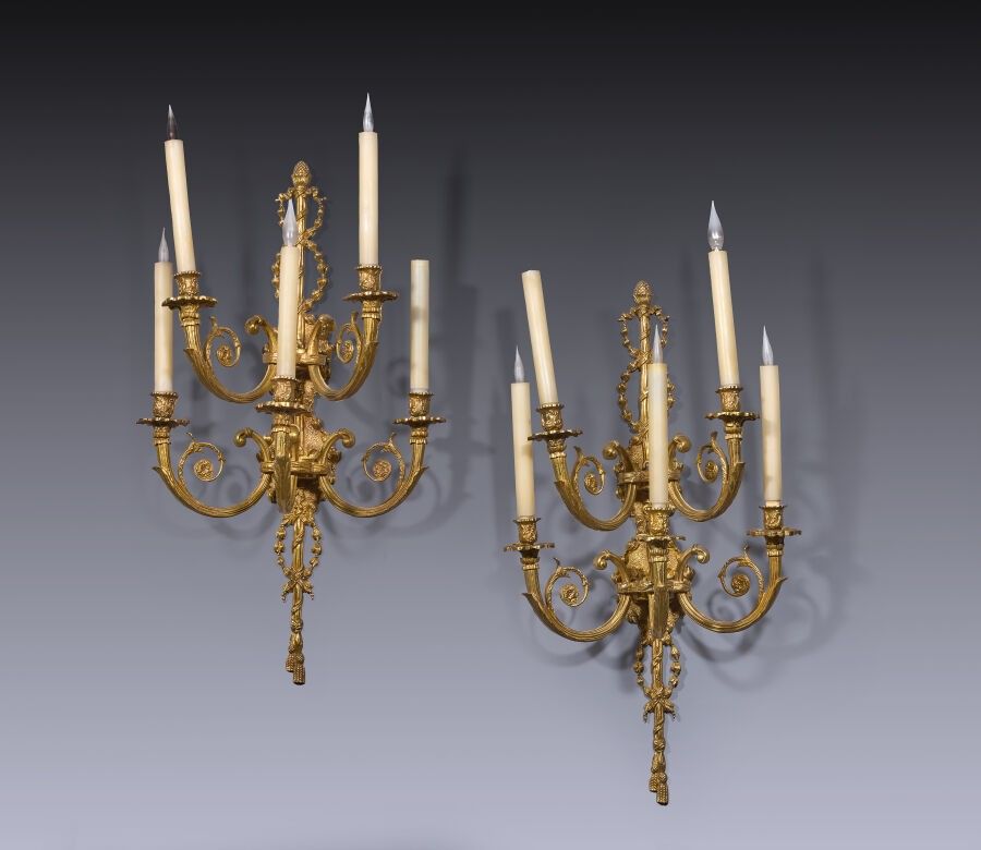 Premium A suite of four chased ormolu sconces with five lights in tw…