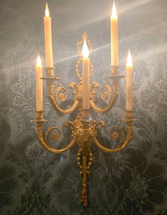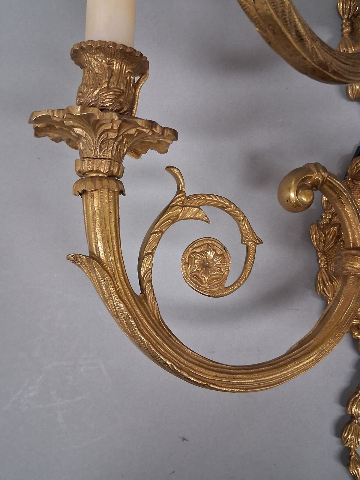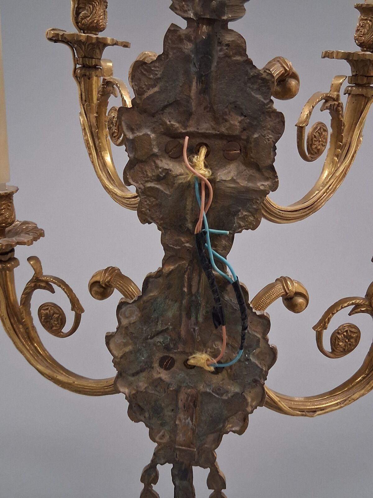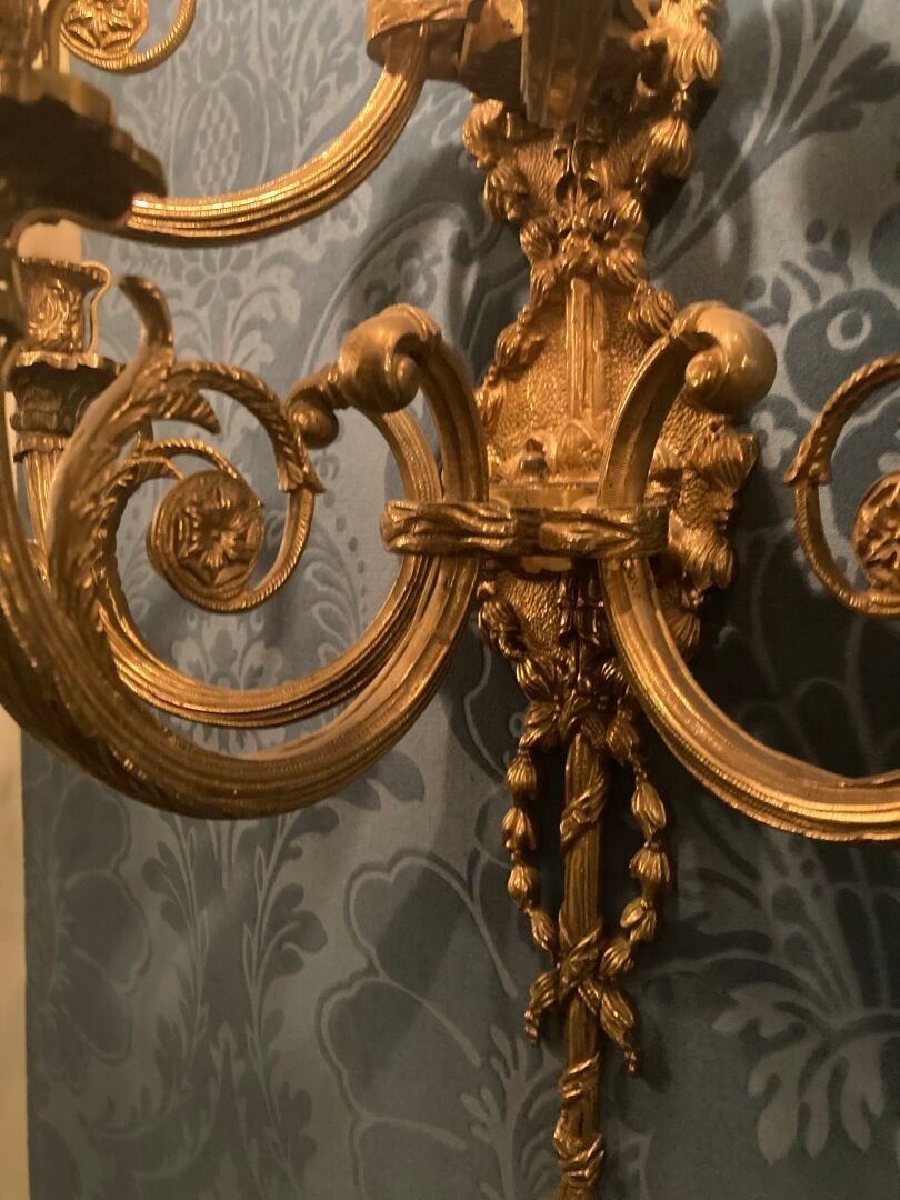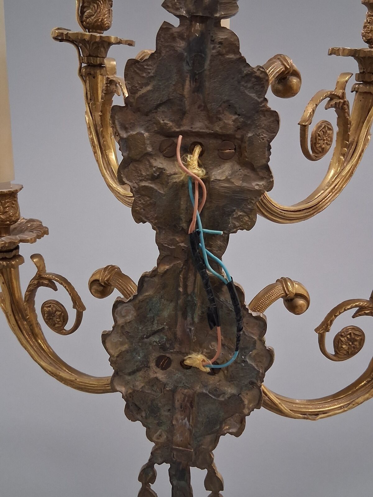 Premium A suite of four chased ormolu sconces with five lights in tw…