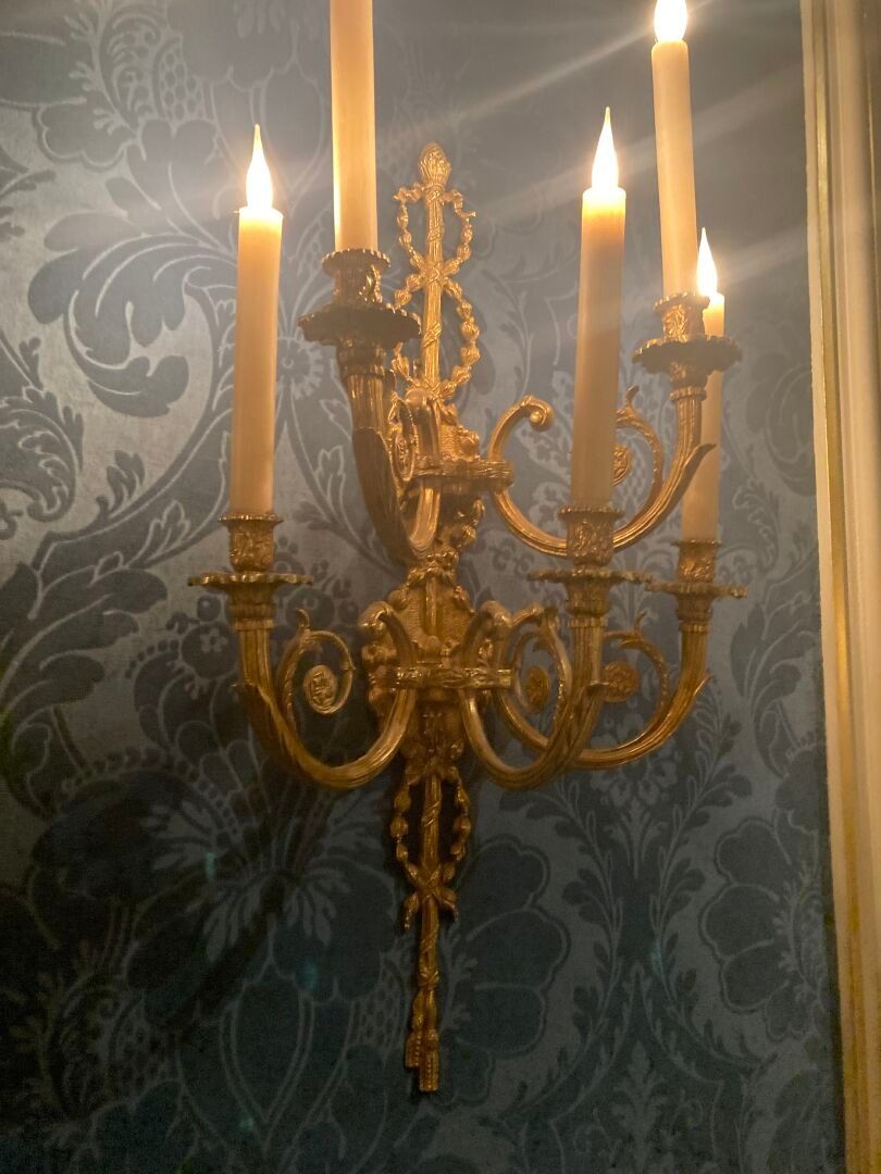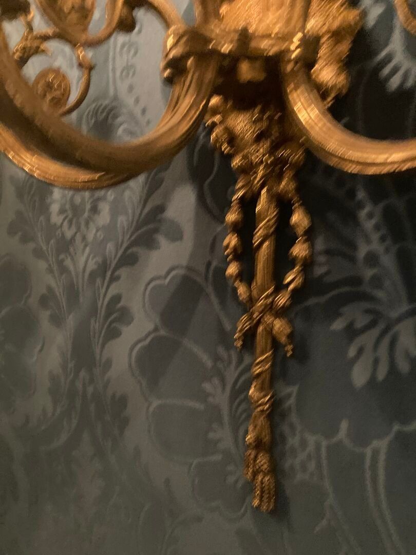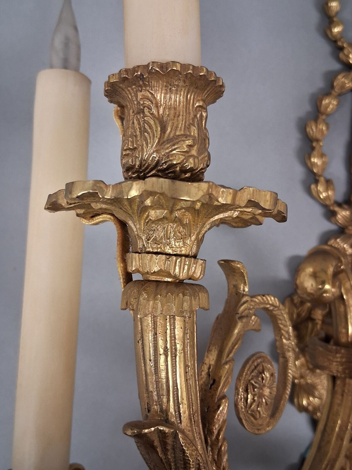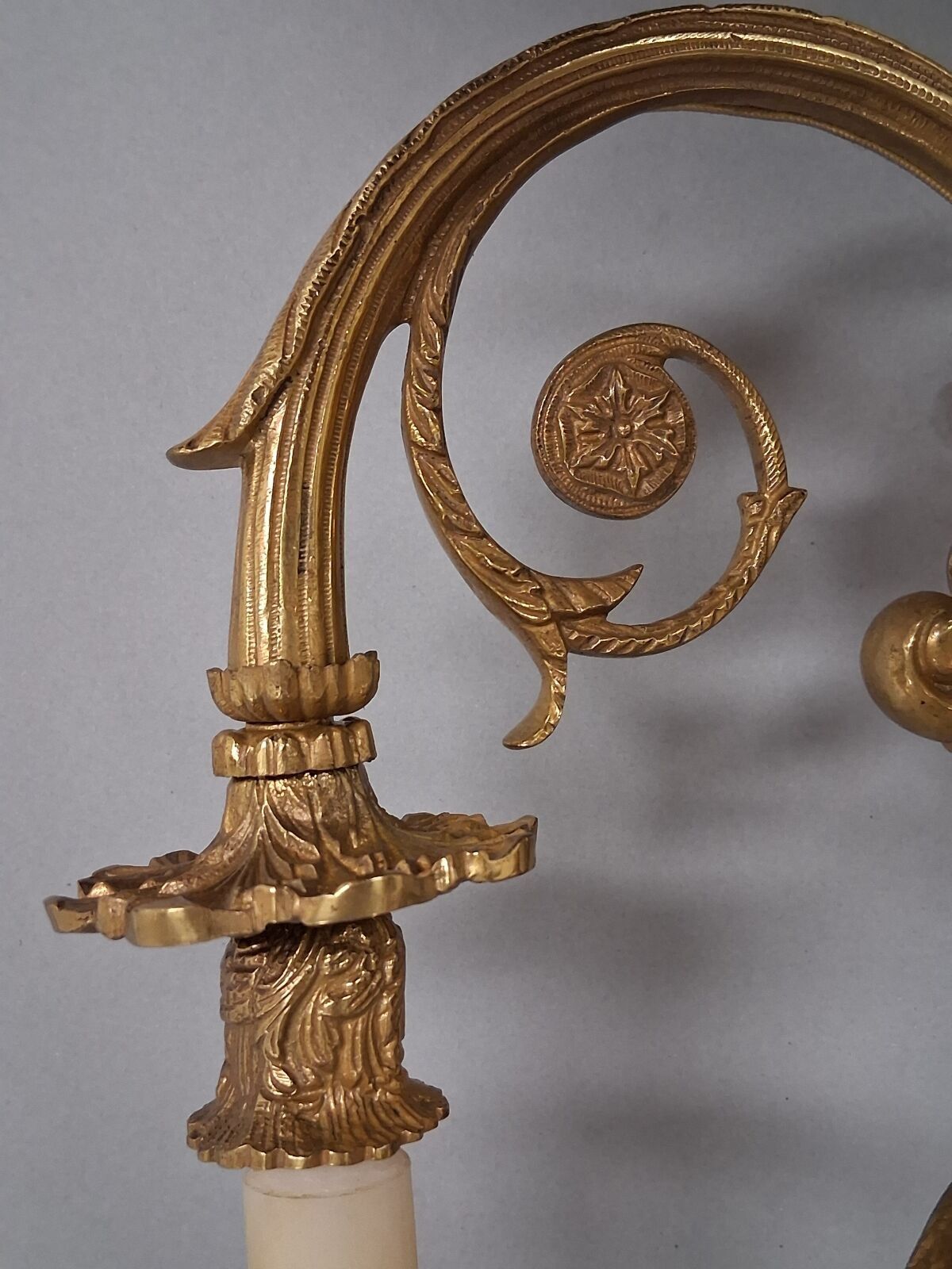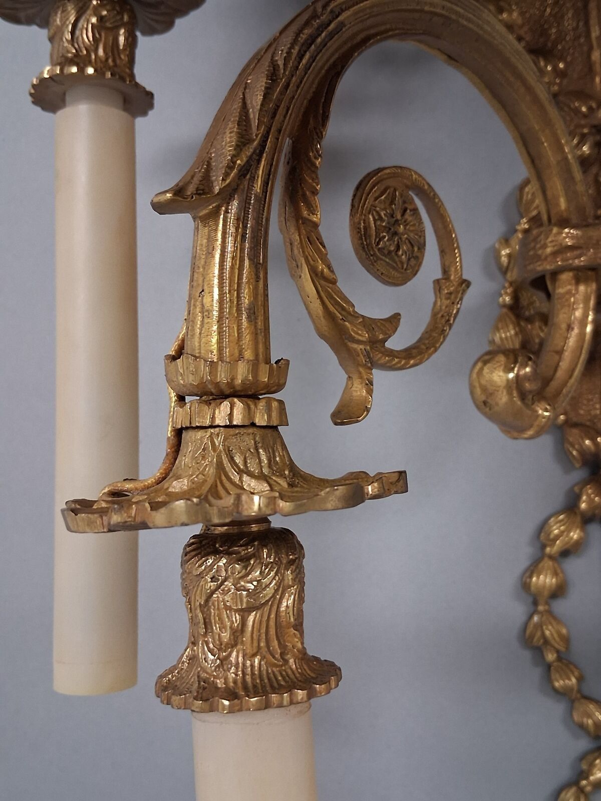 Premium A suite of four chased ormolu sconces with five lights in tw…