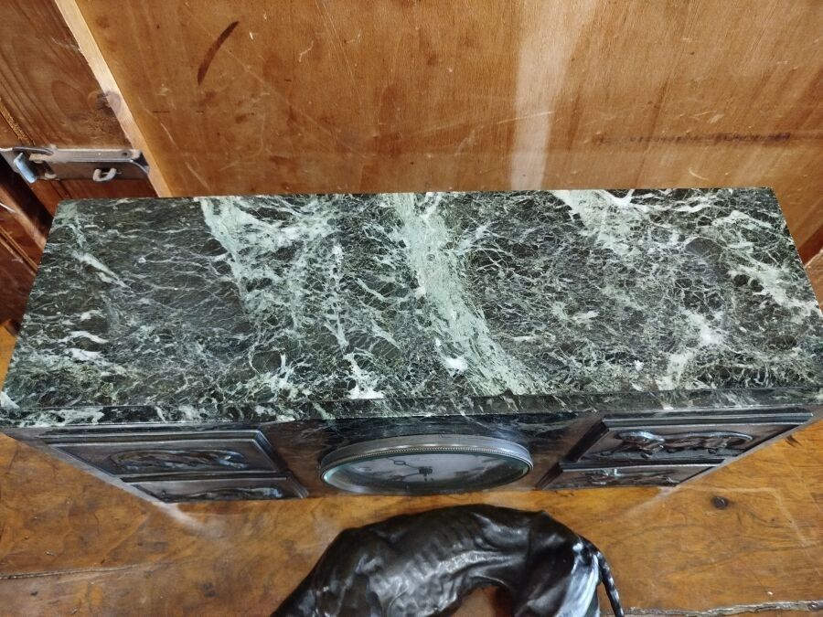 Premium Green veined marble clock decorated with patinated bronzes a…
