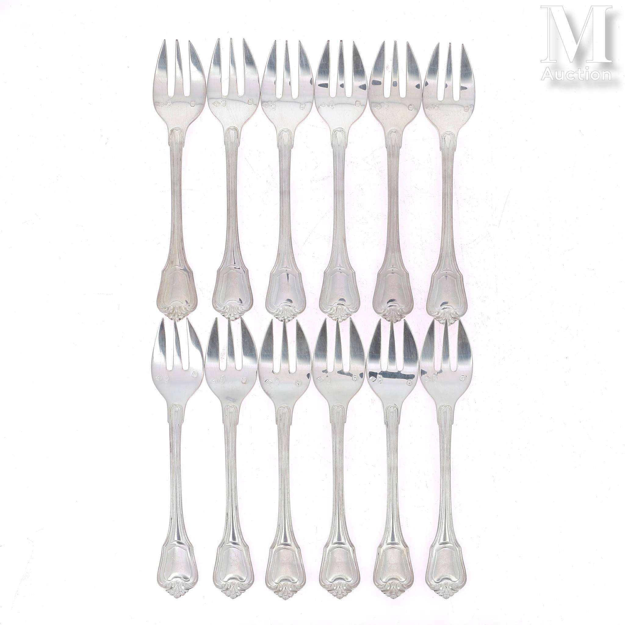 CHRISTOFLE, 20th century 12 silver oyster forks Port Royal" …