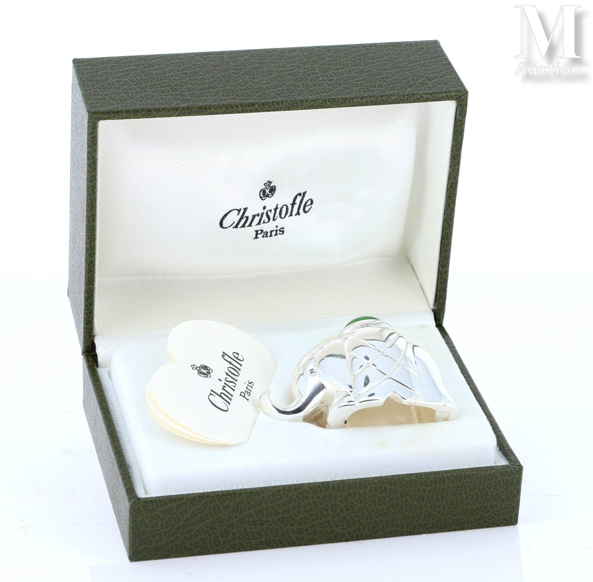 Small sculpture in silver-plated metal and green glass cabochon by Christofle.