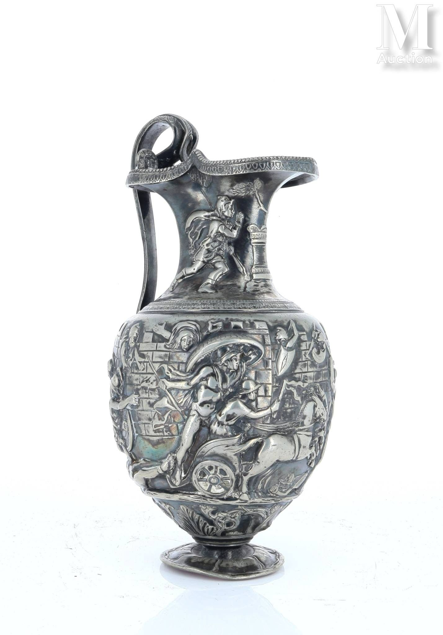 Galvanoplastic reproduction in silver-plated metal, the decoration represents Achilles on his chariot and Achilles dying in front of the walls of Troy.