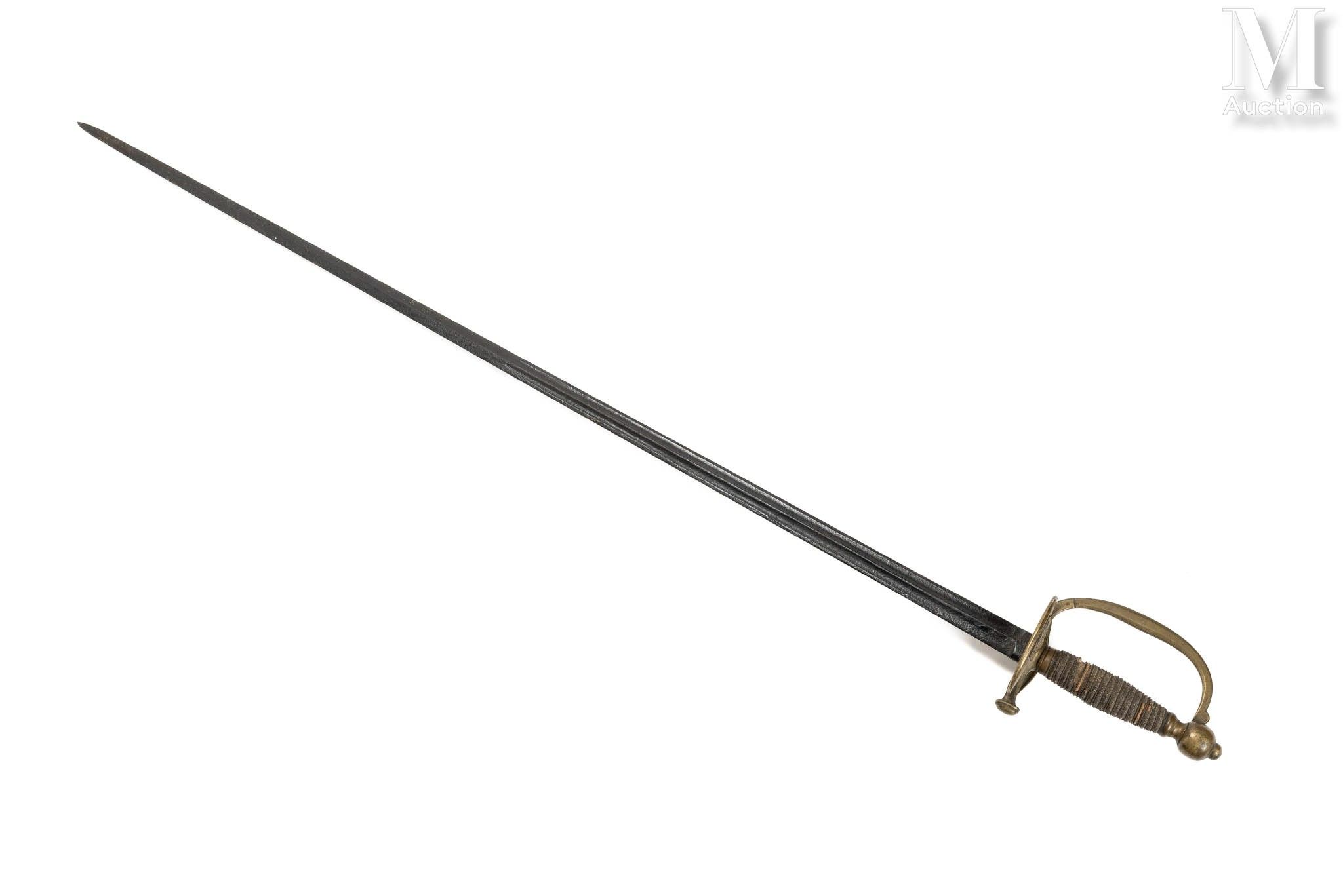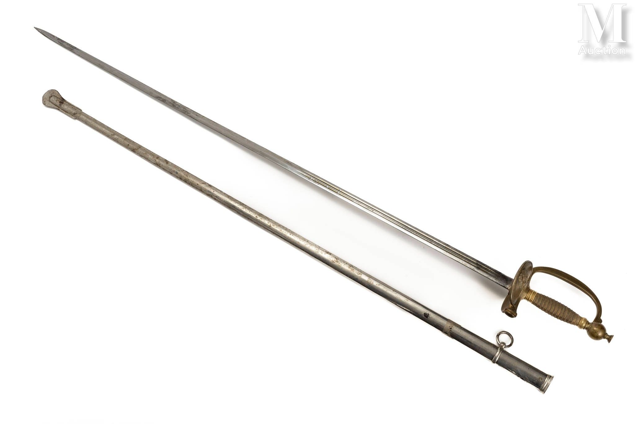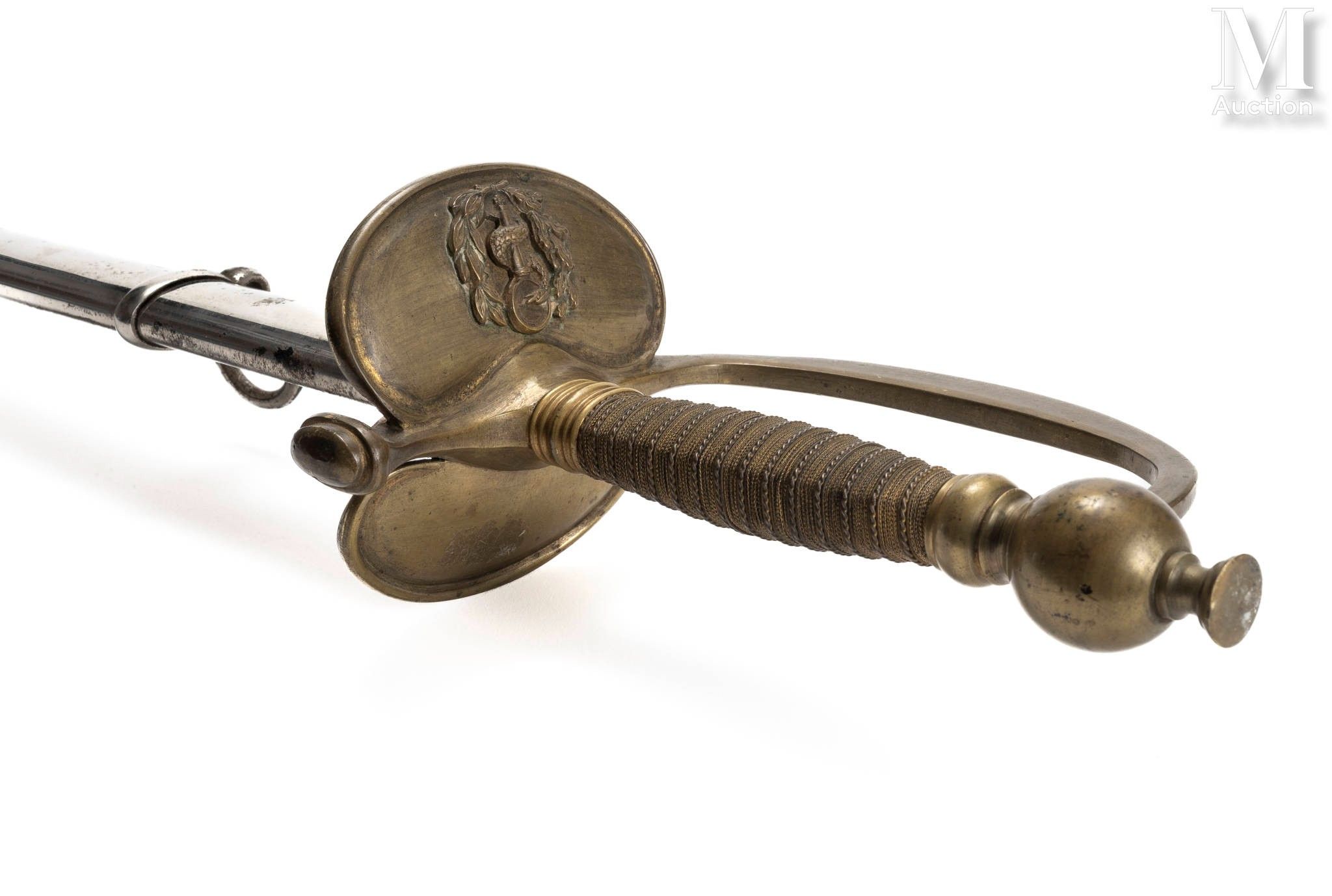 -Subordinate officer of the health service. Watermarked fuse. Brass mounting, caduceus keypad. Blade with gutters. Nickel-plated iron scabbard with one strap (minor oxidation). A.B.E. Third Republic.