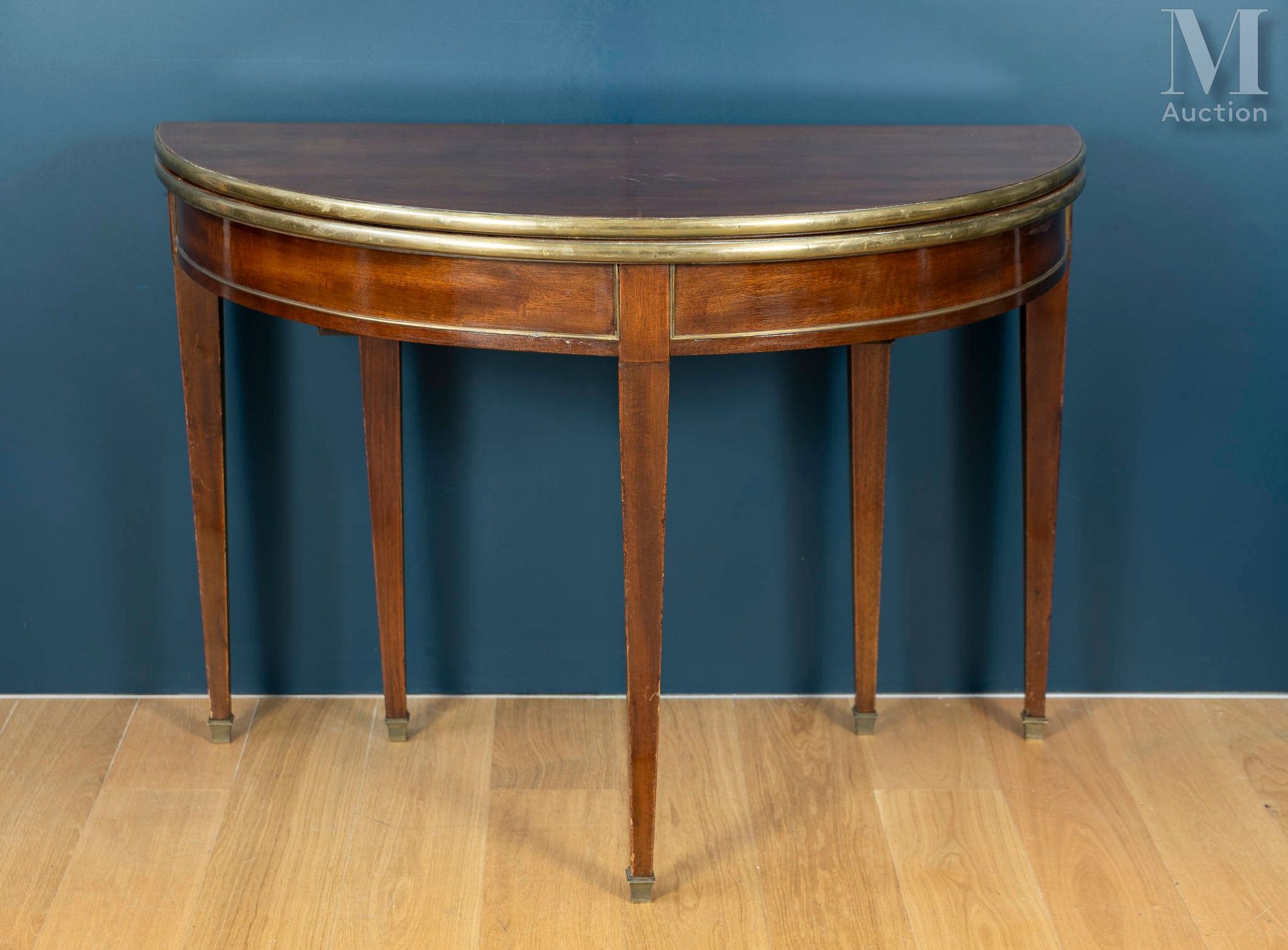 Half-moon table Mahogany veneer, the top highlighted with a …
