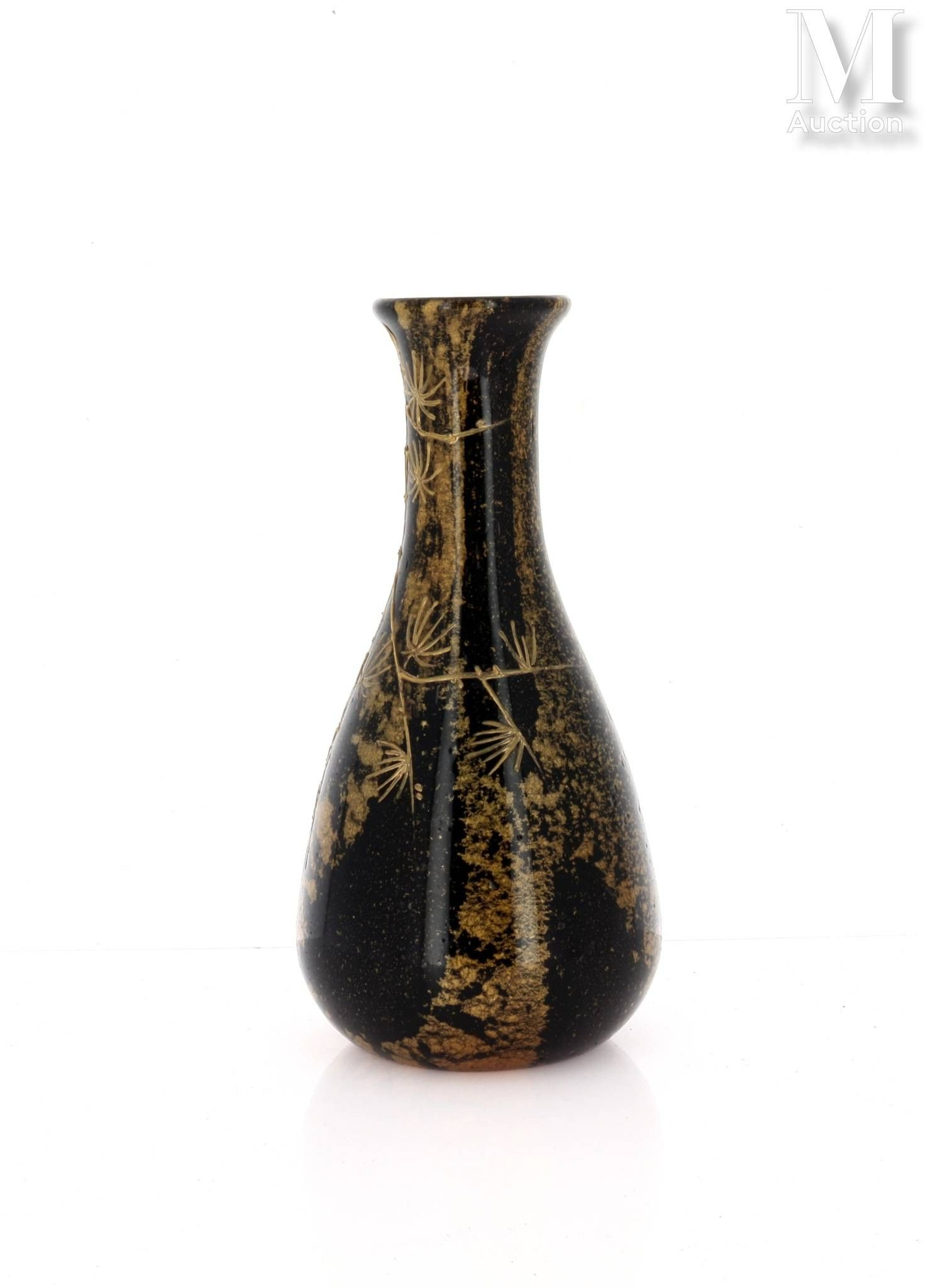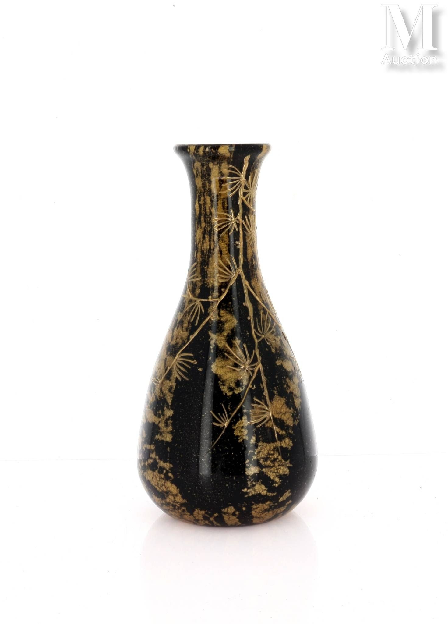 A multi-layered glass piriform vase with gilded metallic leaf inclusions and gilded relief decoration of branches.