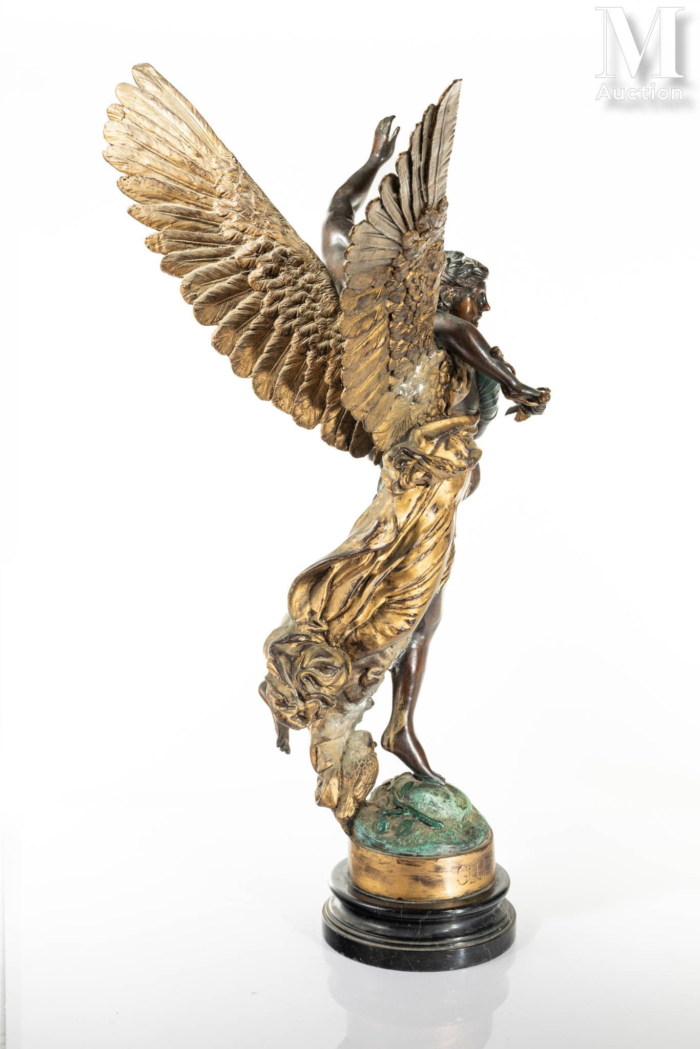 This allegory symbolising the heroic France defeated by Prussia in 1871 was created by the star sculptor of the Third Republic, Antonin Mercié (1845-1916). First produced in plaster at the Villa Medici in 1872, Gloria victis quickly became a success, being reproduced in bronze in its actual size (220 cm), or reduced and published in dozens of copies.