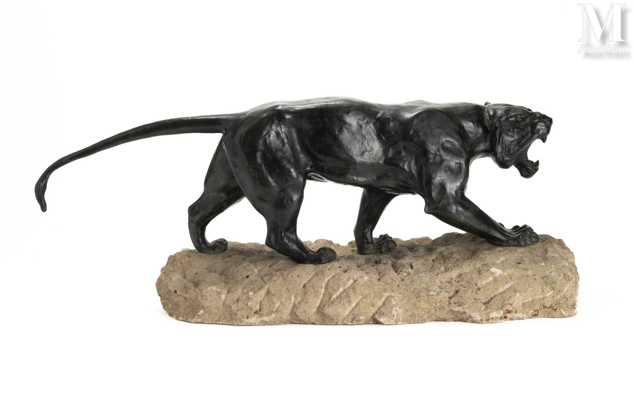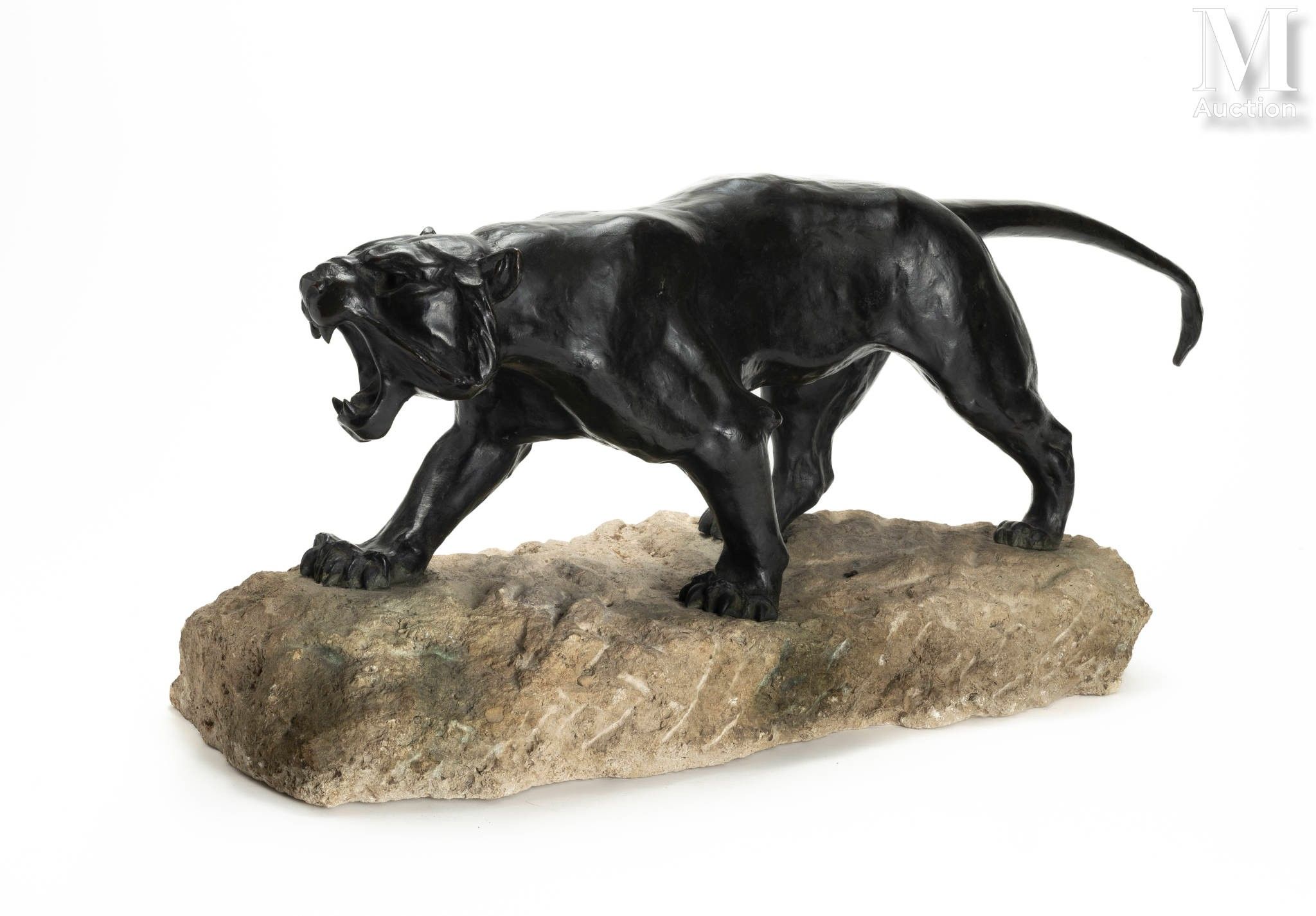 Lioness roaring Bronze sculpture with brown patina