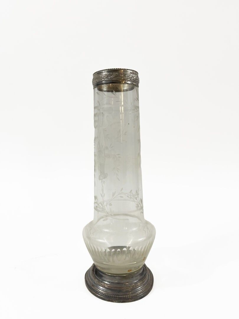 Cut crystal vase decorated with foliage. Silver mounting, Minerve hallmark.