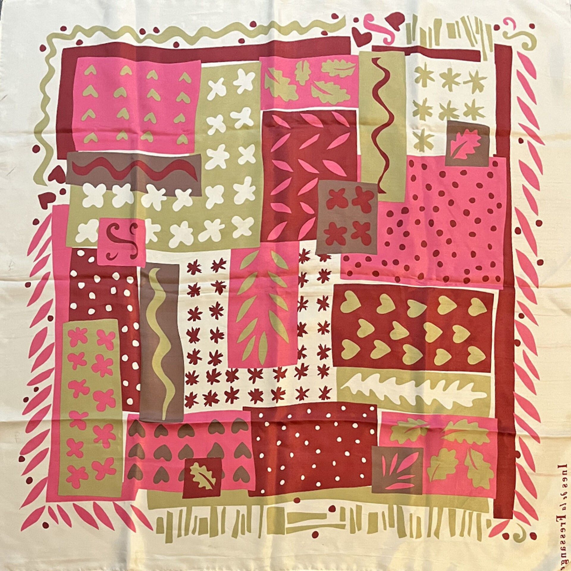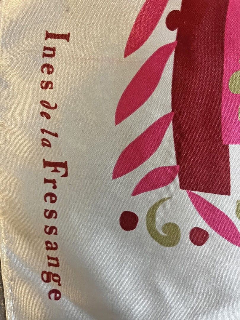 INES DE LA FRESSANGE. Square in beige, gold, carmine and pin…