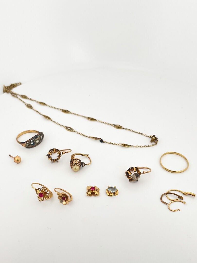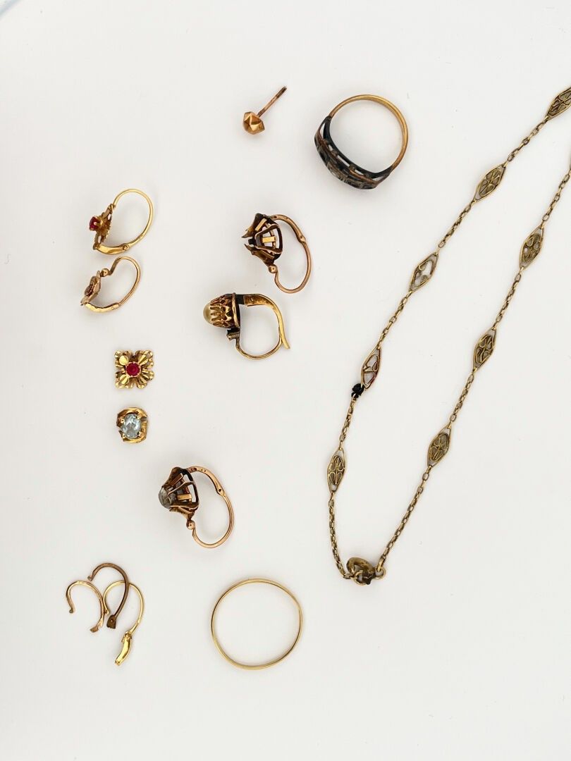 Lot of gold fragments including rings, dormeuses, chains, etc...