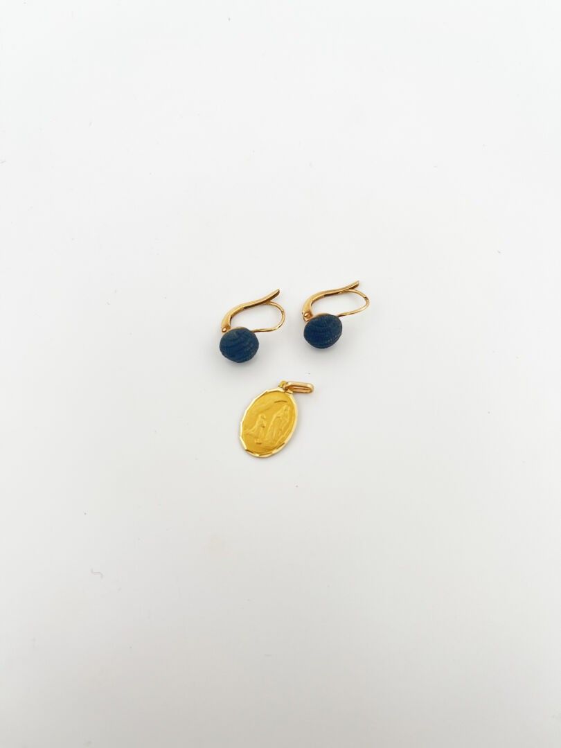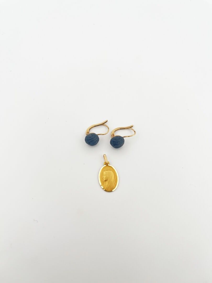 Small yellow gold religious medal in the effigy of the Virgin Mary.