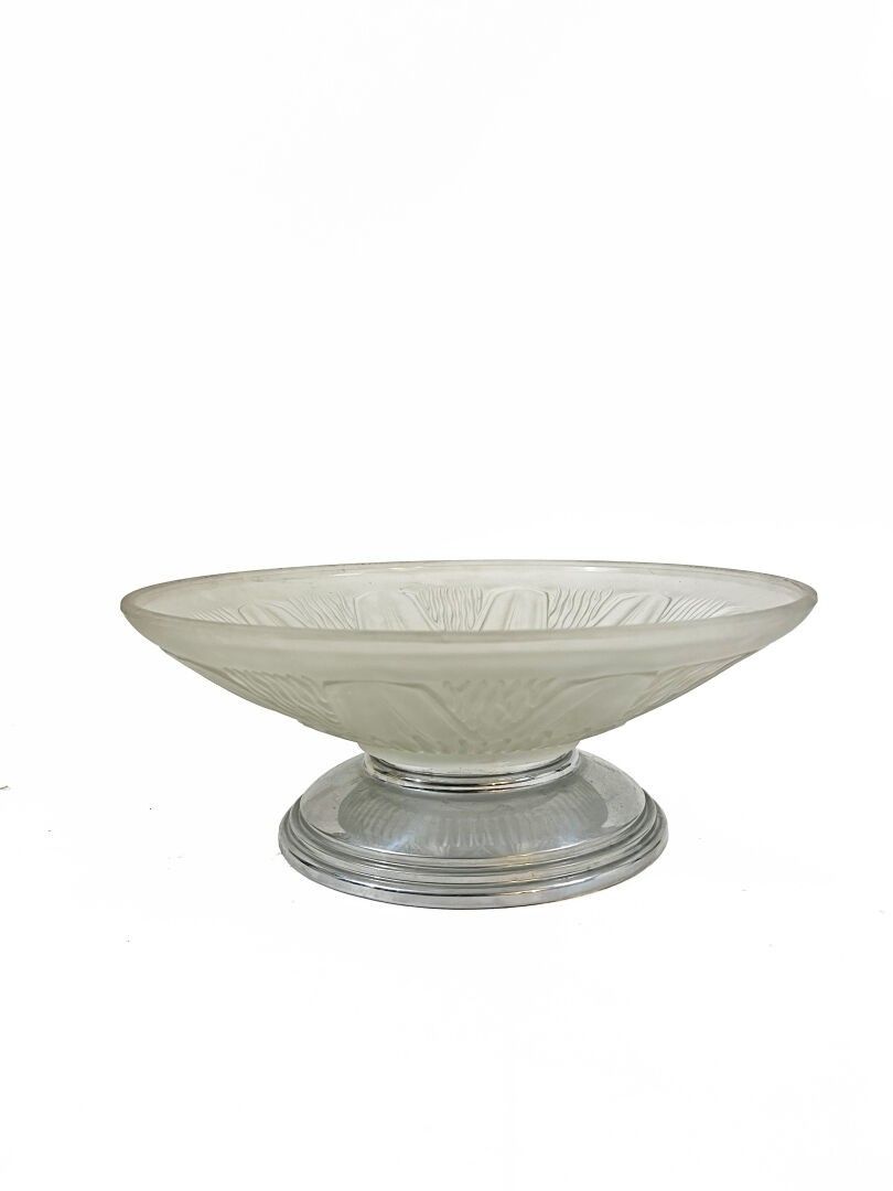 Moulded pressed glass bowl in the Sabino style 11.5 x 31 cm