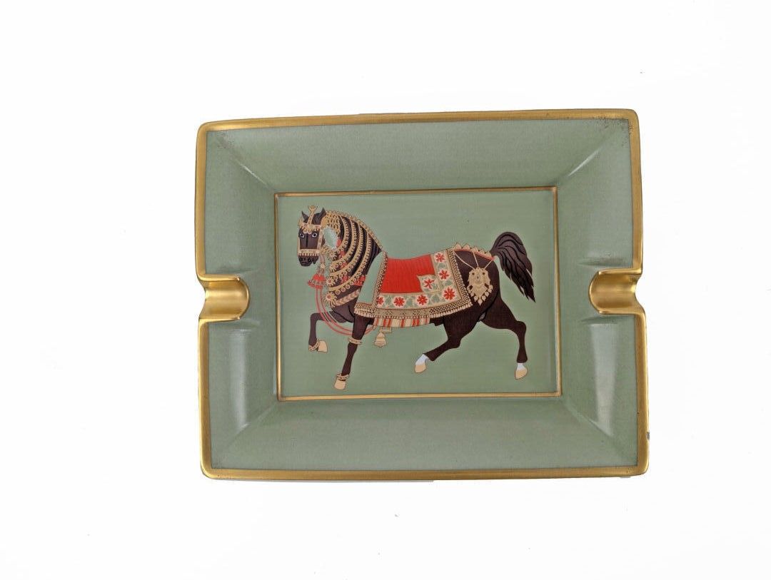HERMES, Paris. A gilt and polychrome enamelled porcelain ash…