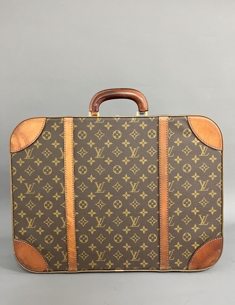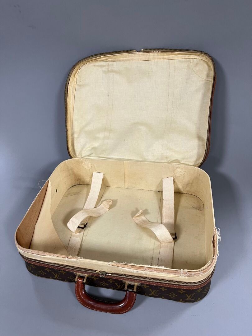 Airbus" suitcase in monogrammed waxed canvas, handle, corners and inserts in cowhide leather (worn).