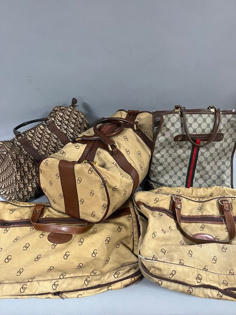Four leather and cotton travel bags are included, one signed Givenchy, Gentleman, Paris and one monnogrammed "Dior".