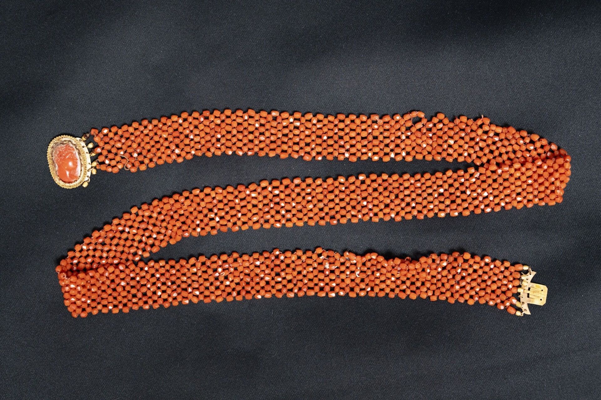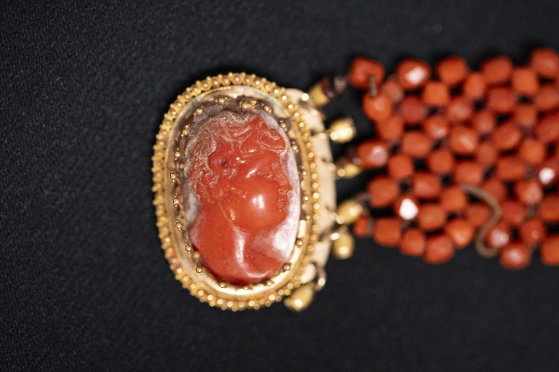 NECKLACE made of coral pearls, the clasp in 18K yellow gold adorned with a coral cameo.