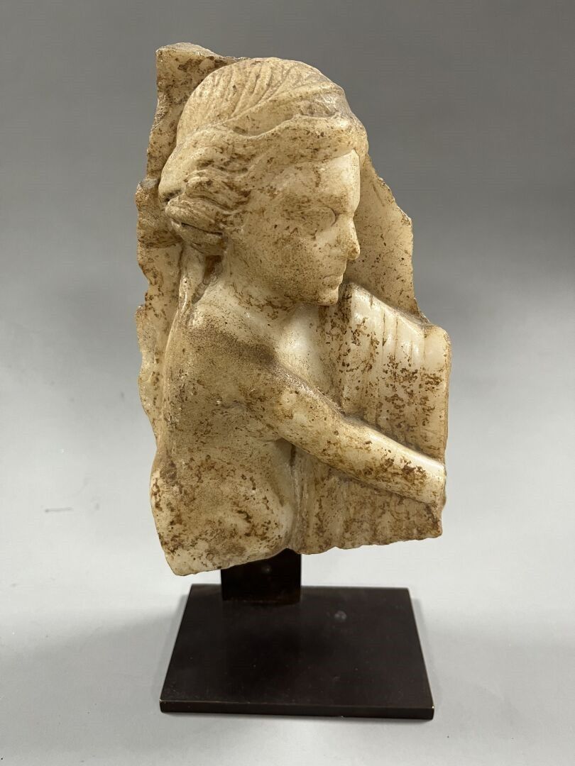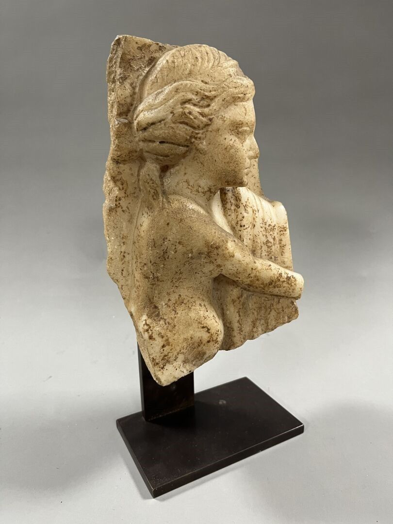 FRAGMENT of high relief representing a young woman in profil…