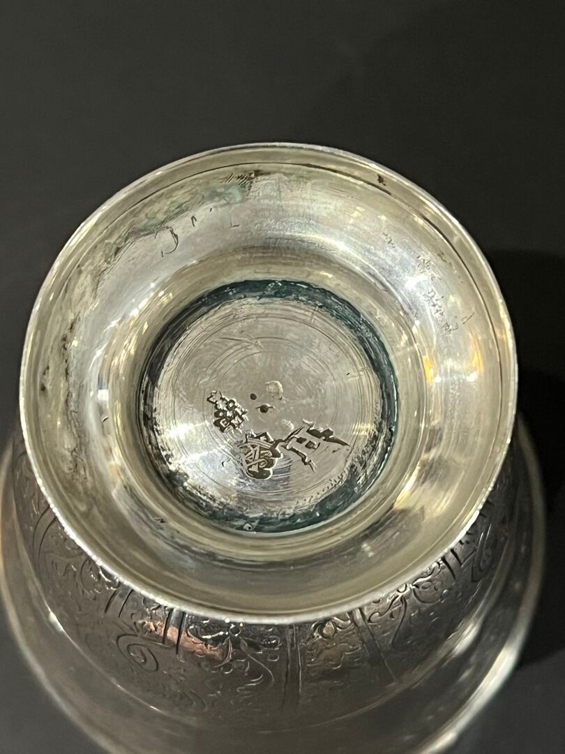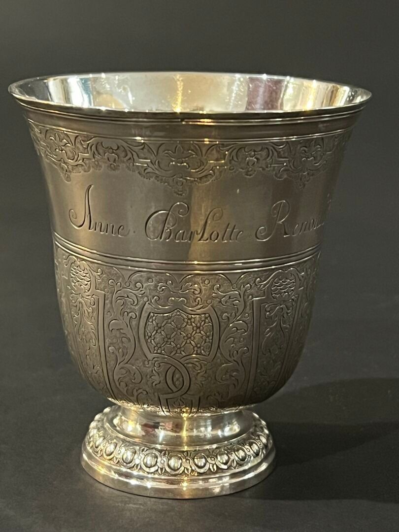 Silver goblet chased on two registers delimited by a rush, pedestal with a border of ovals.