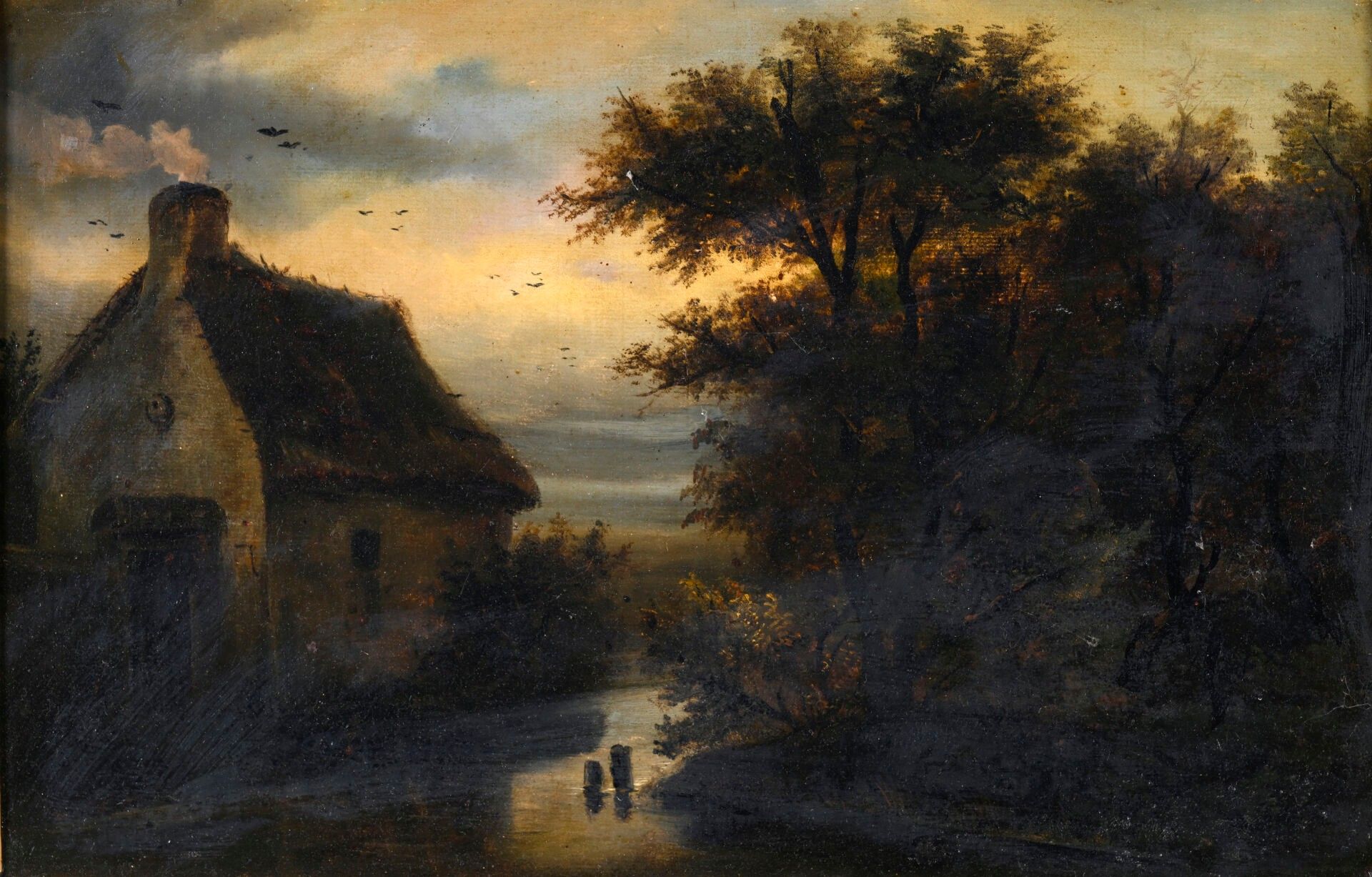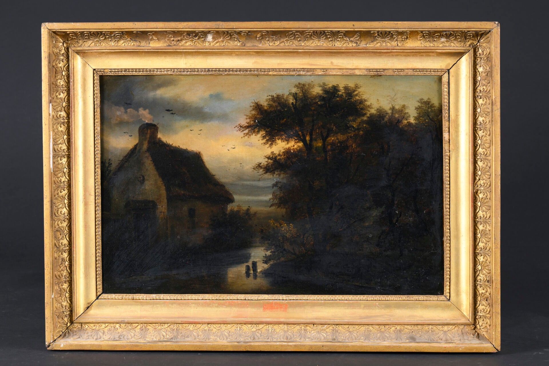 19th century FRENCH SCHOOL House by the water, landscape at …