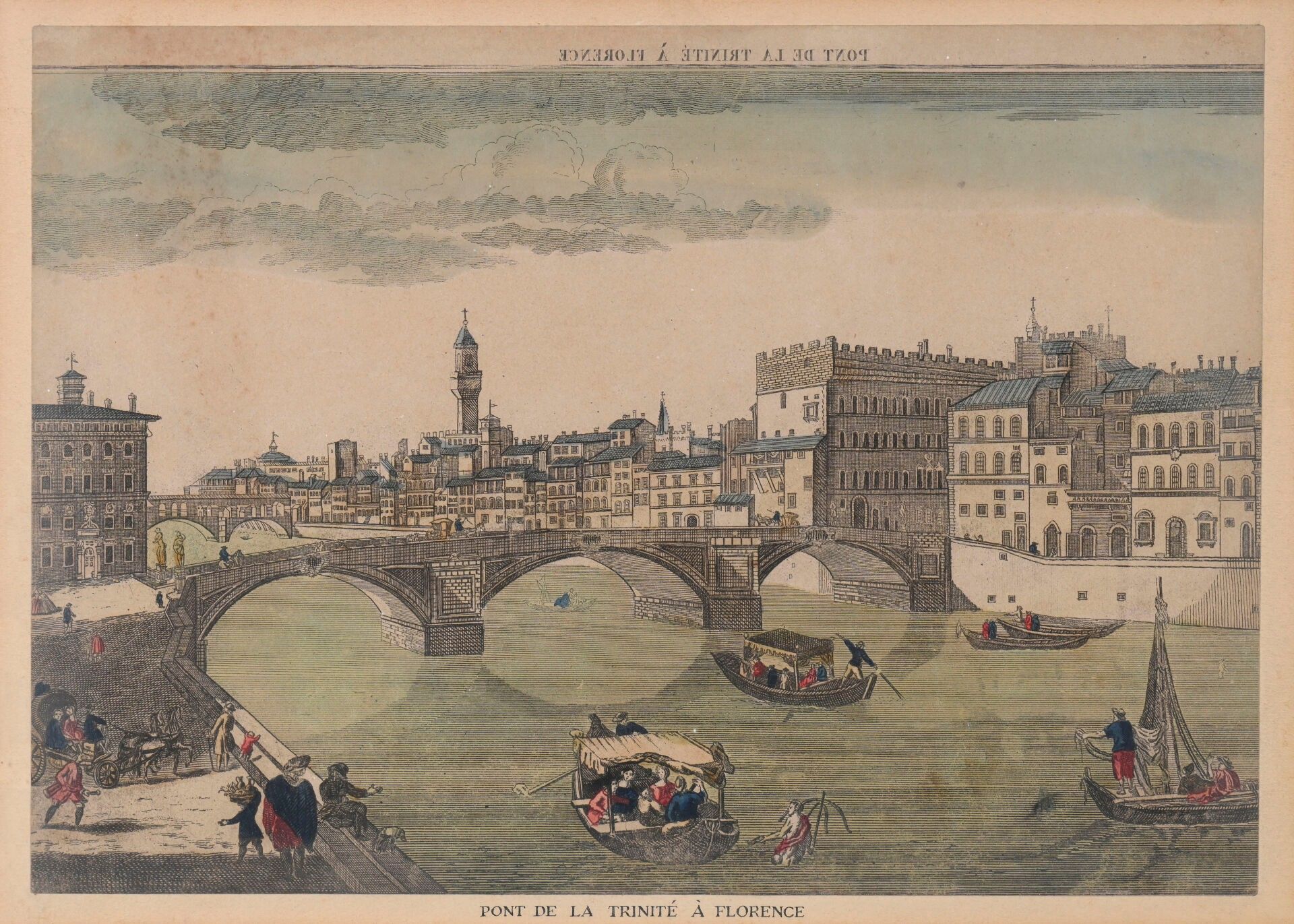Suite of Four Optical Views Representing the Trinità Bridge in Florence, the Pont Neuf in Paris, the Concorde and the Château de Compiègne