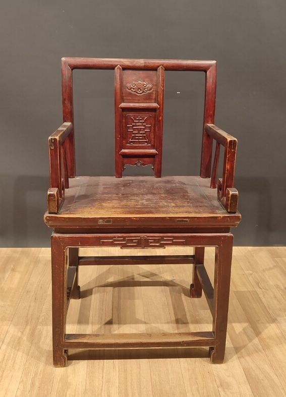China, early 20th century. Red lacquered wood armchair. Height: 96 cm