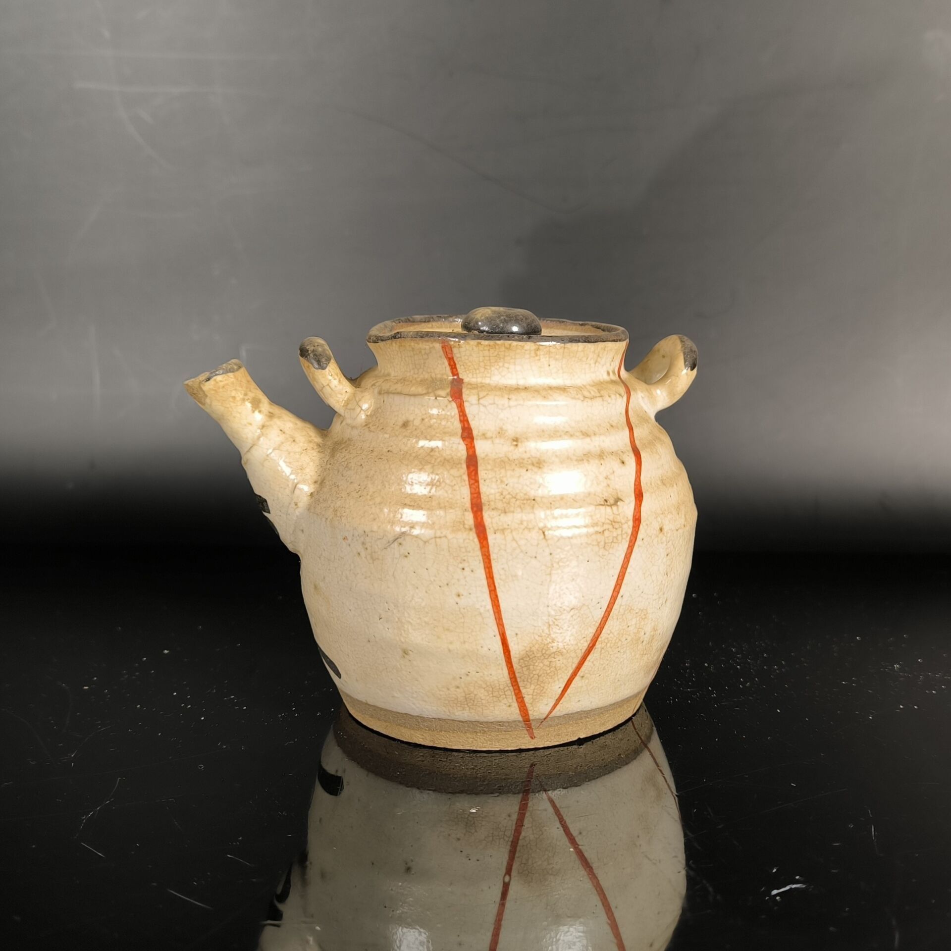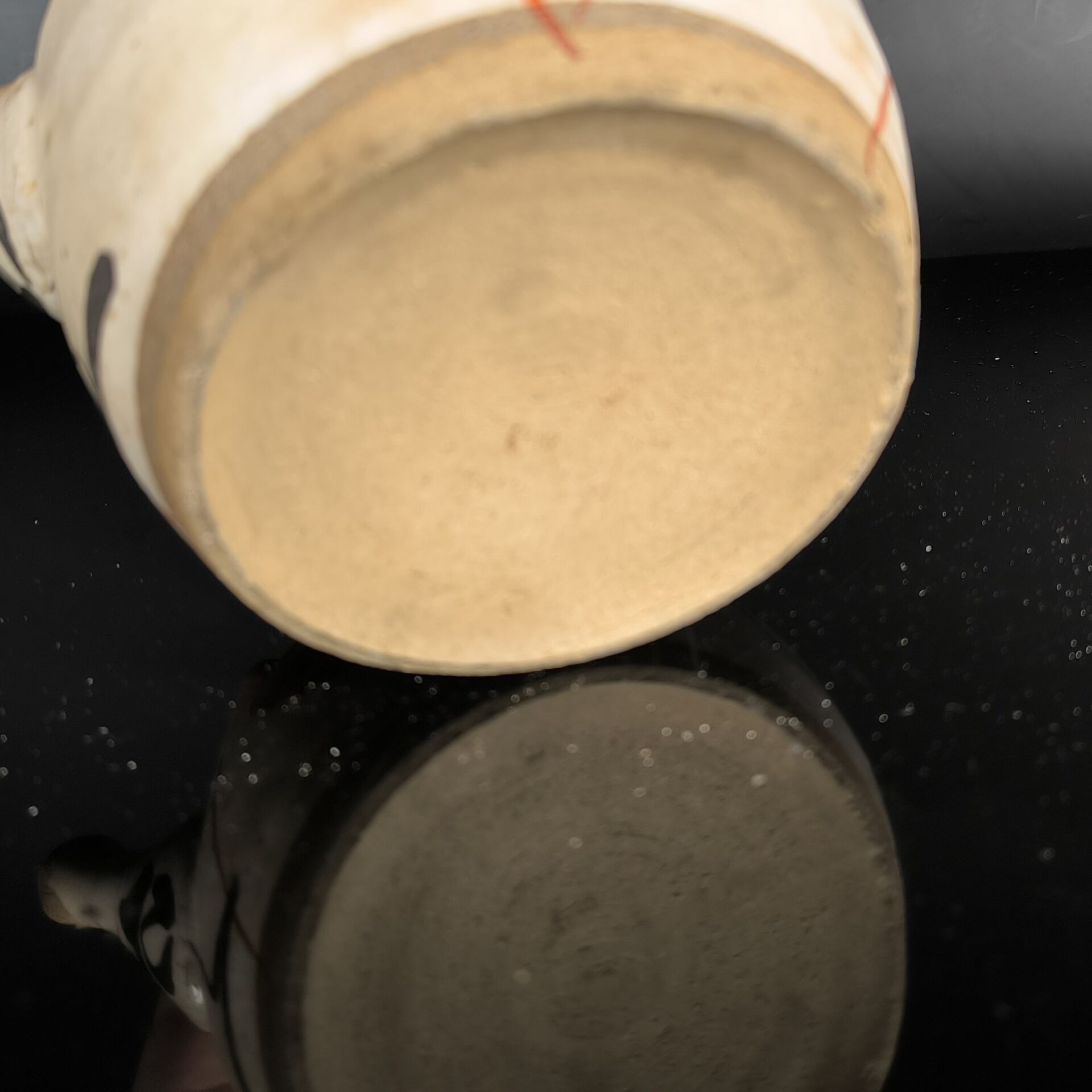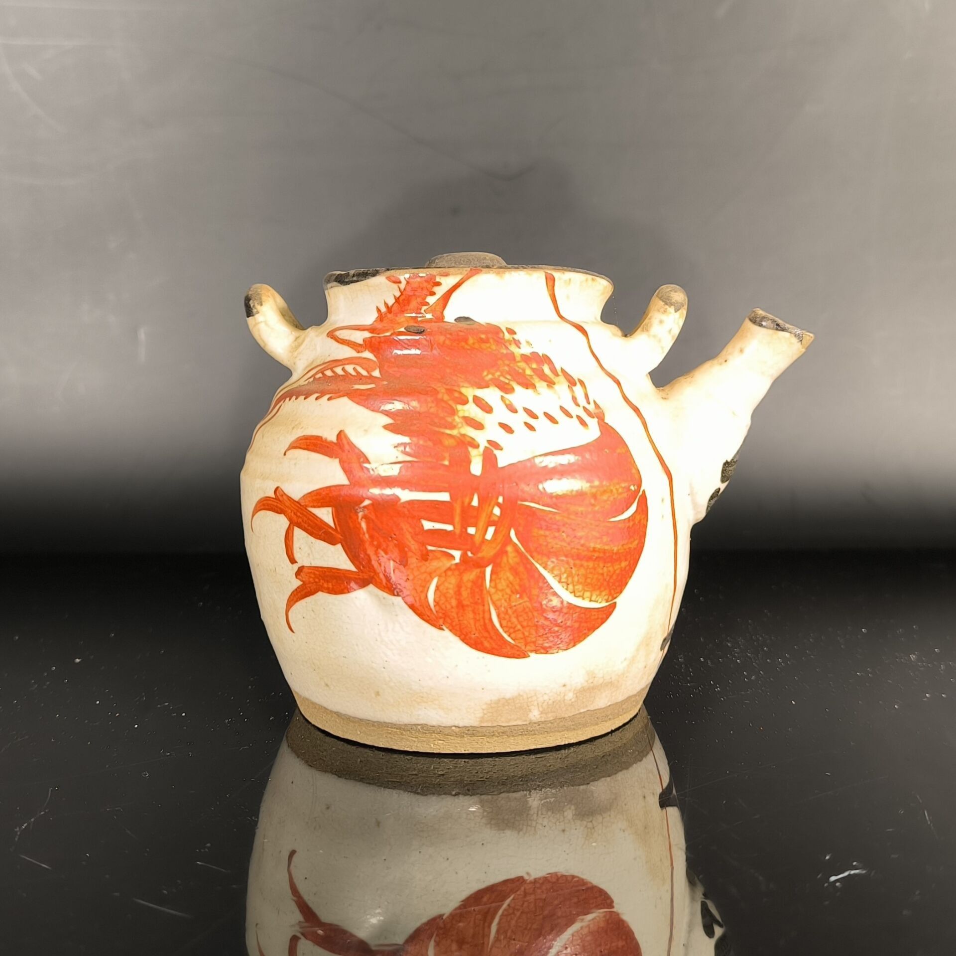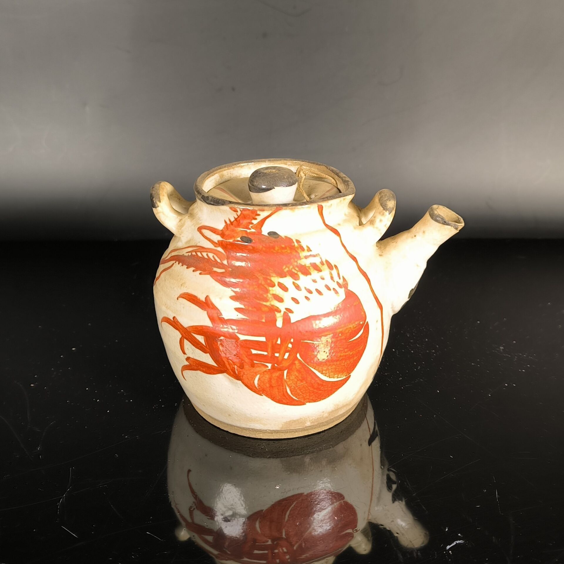 Stoneware jug with beige glaze and lobster decoration. Height 11 cm