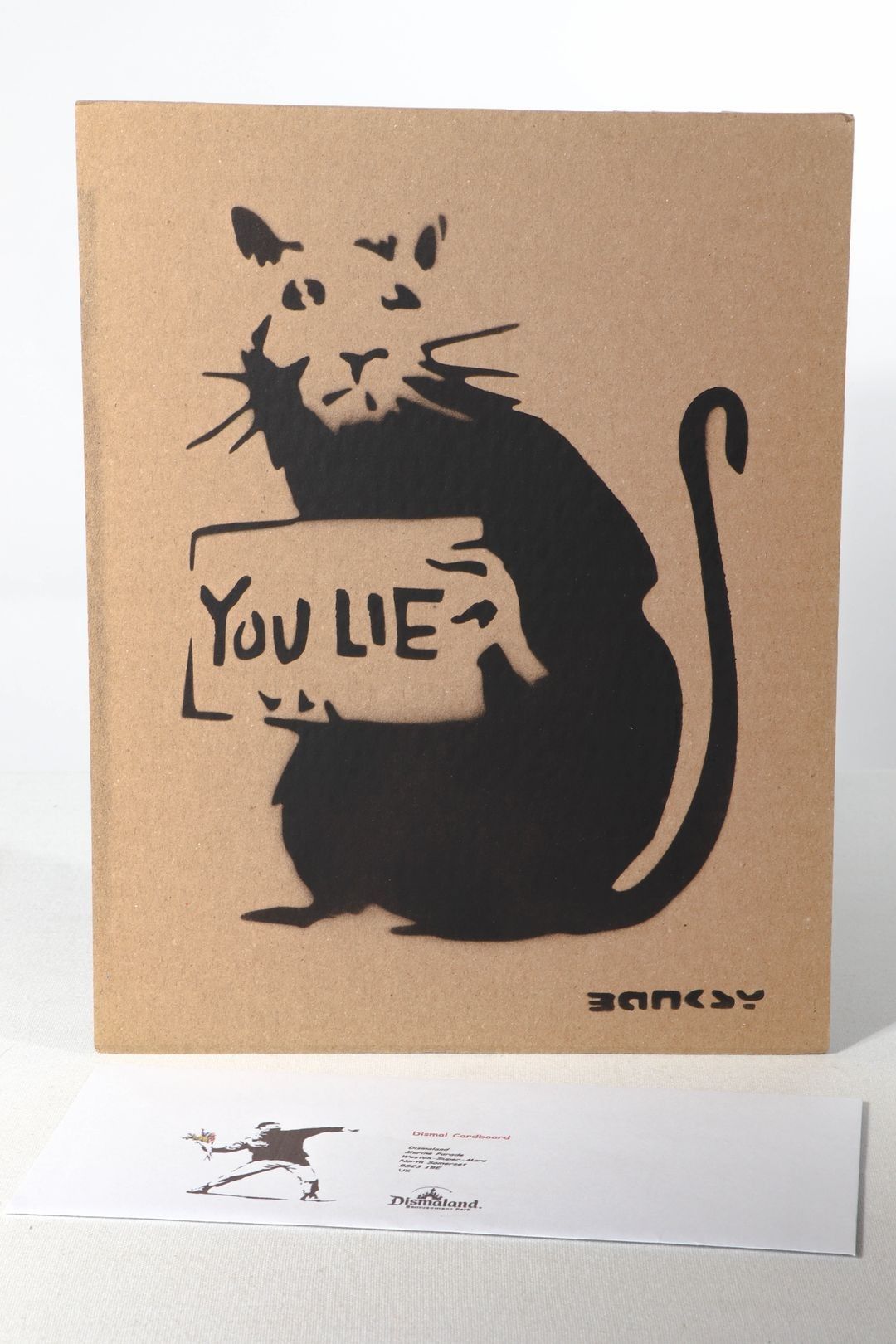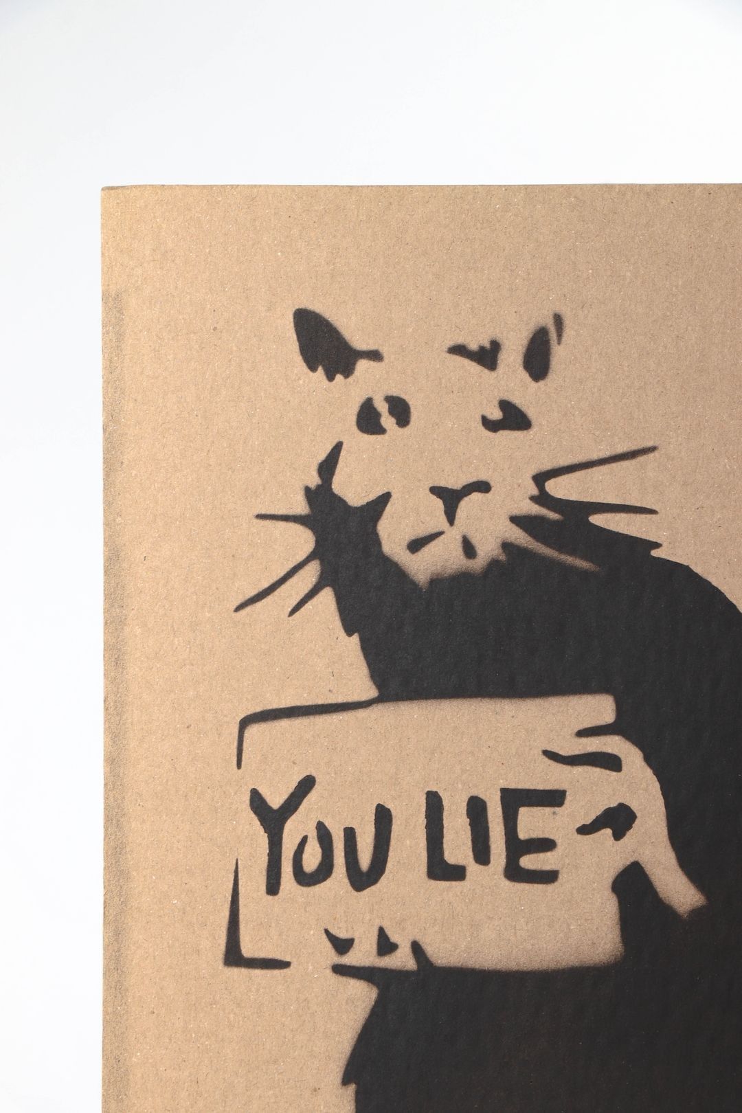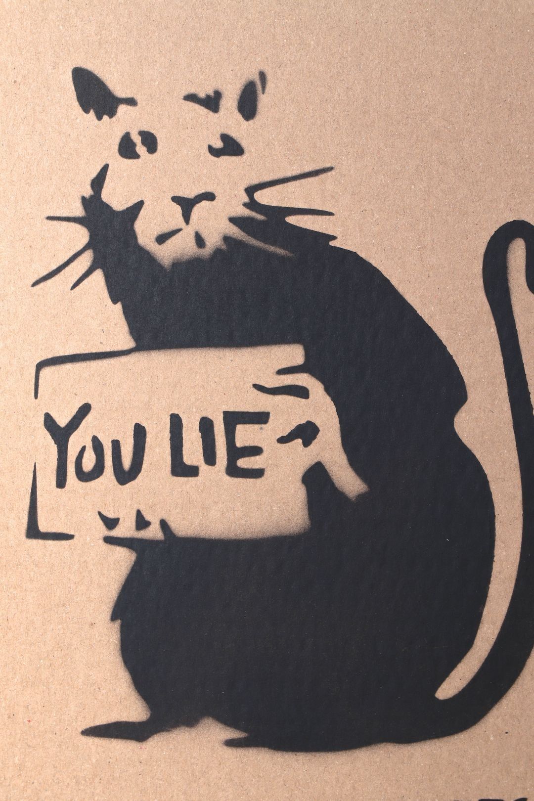 BANSKY (after) YOU LIE" Rat Stencil and aerosol on cardboard…