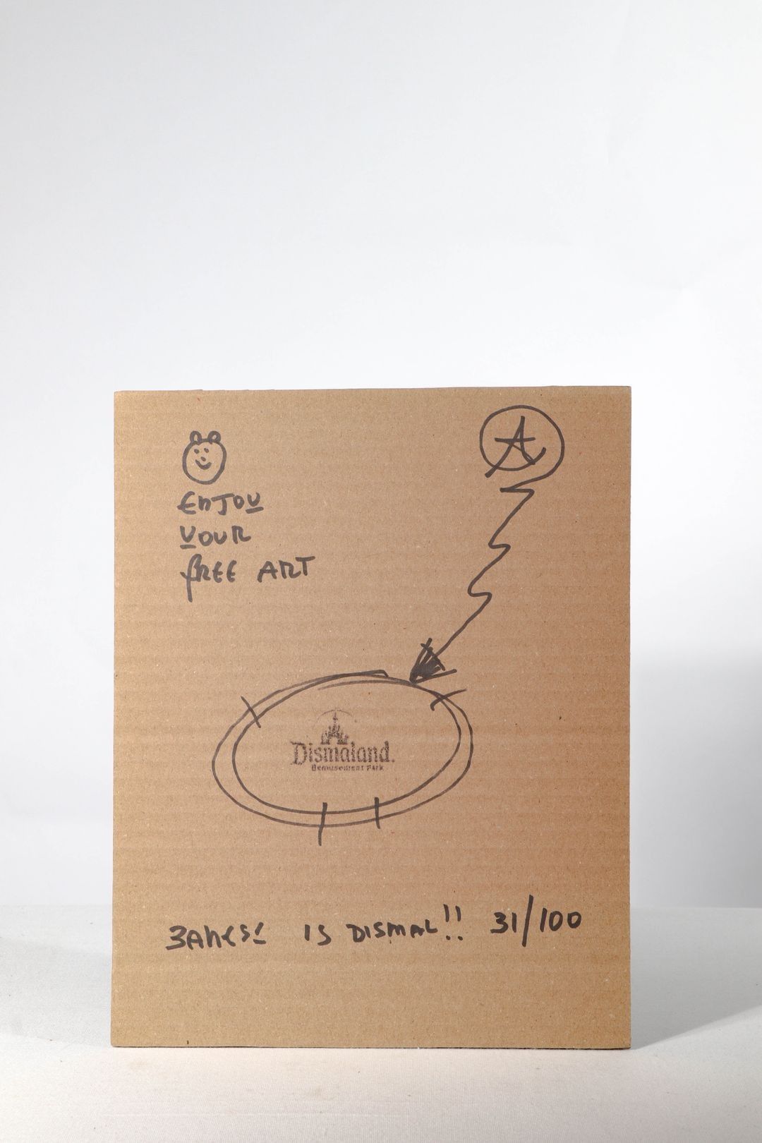 Signed in the stencil and inscribed on the reverse "Enjoy your free art/Banksy is dismal!