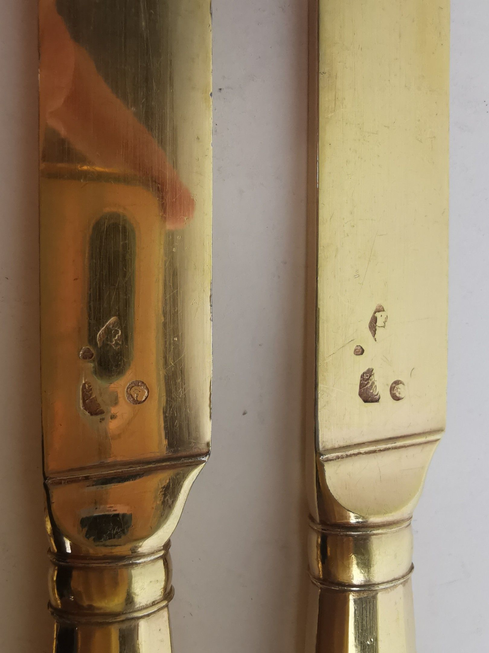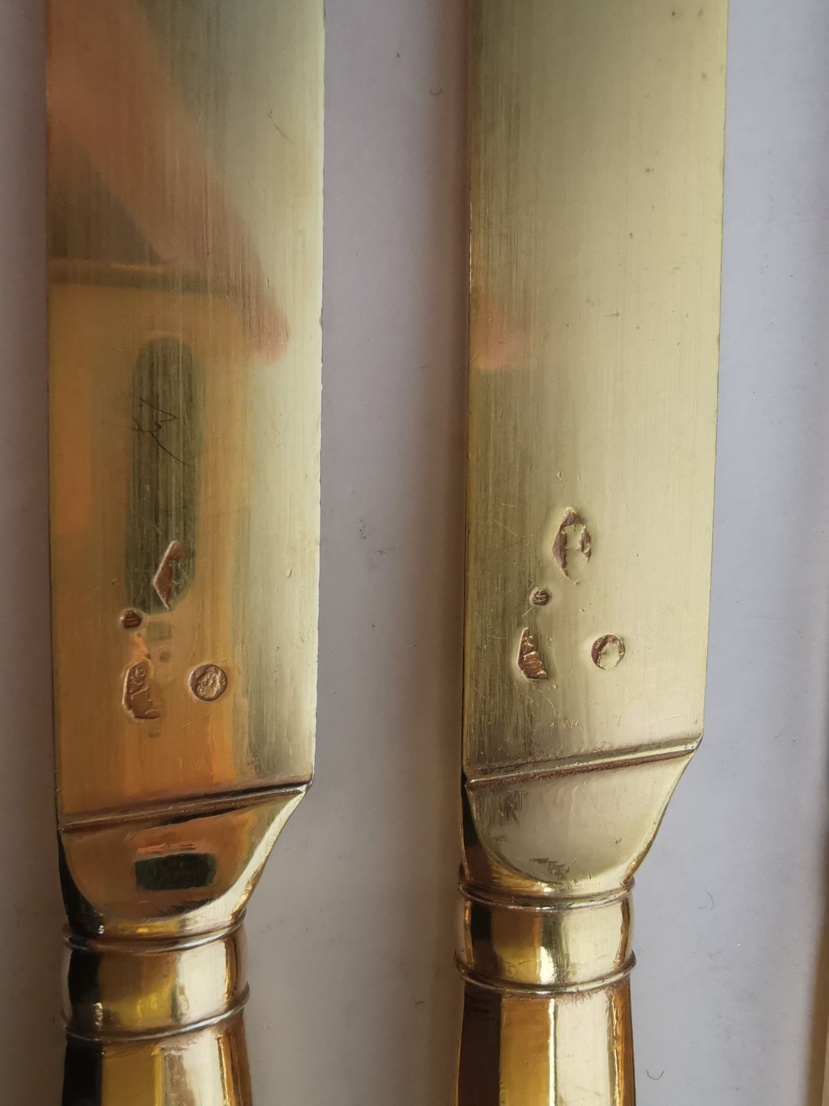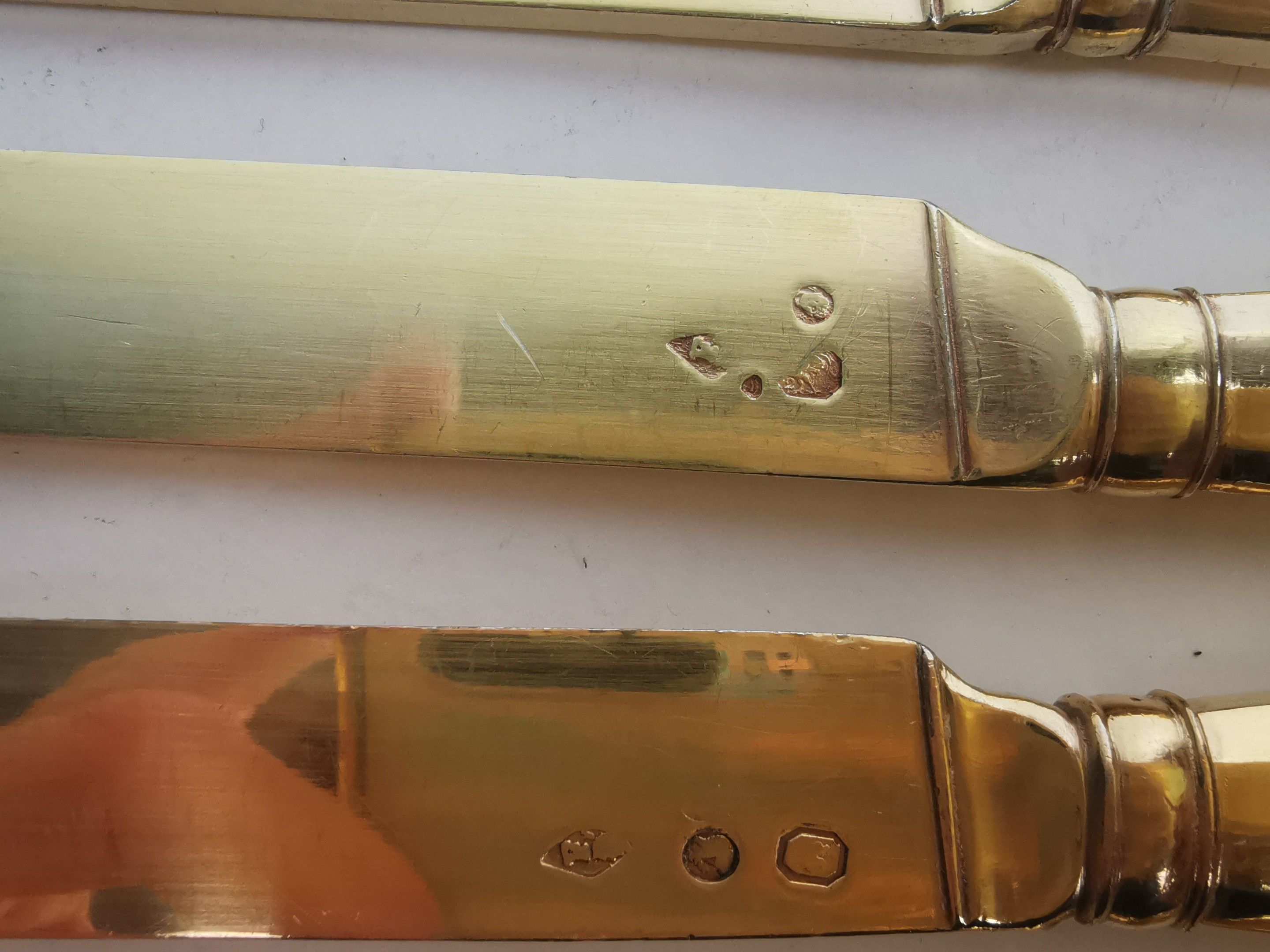 - six knives, square-handled model: 1798-1809 (hallmark 2nd title/office n°78 for 5 knives) and 1809-1819 (1st title for 1 knife), hallmark "F".