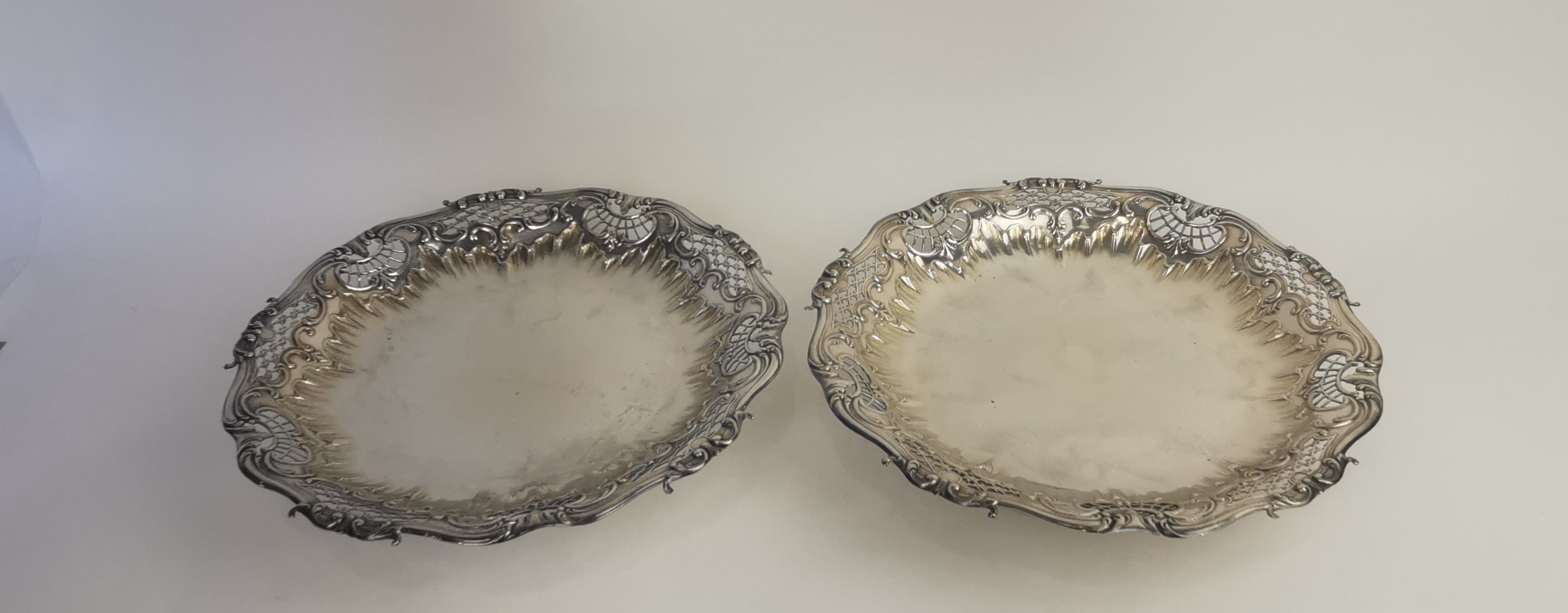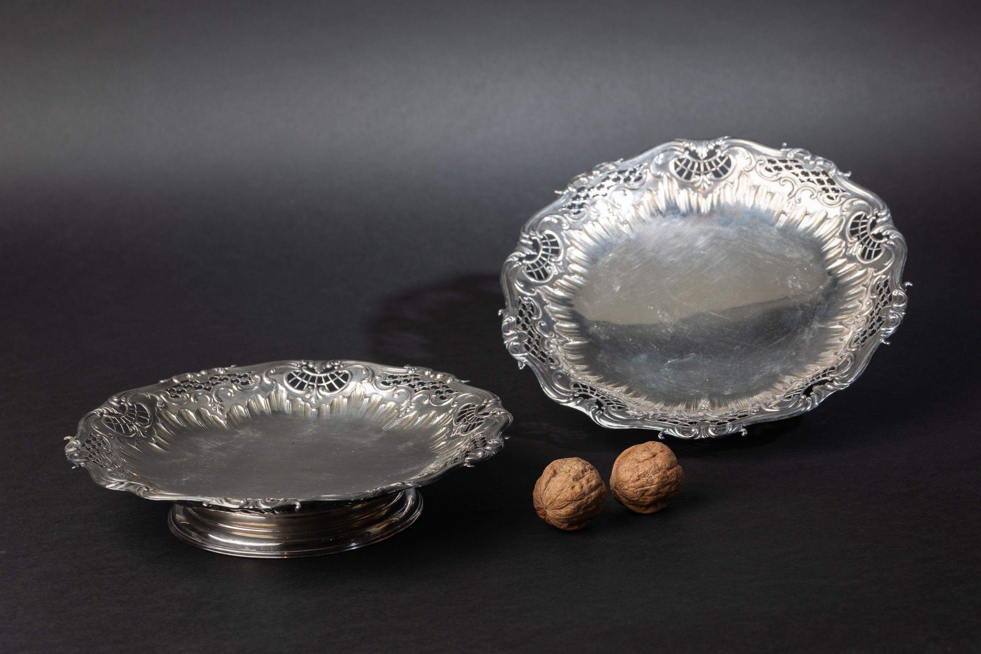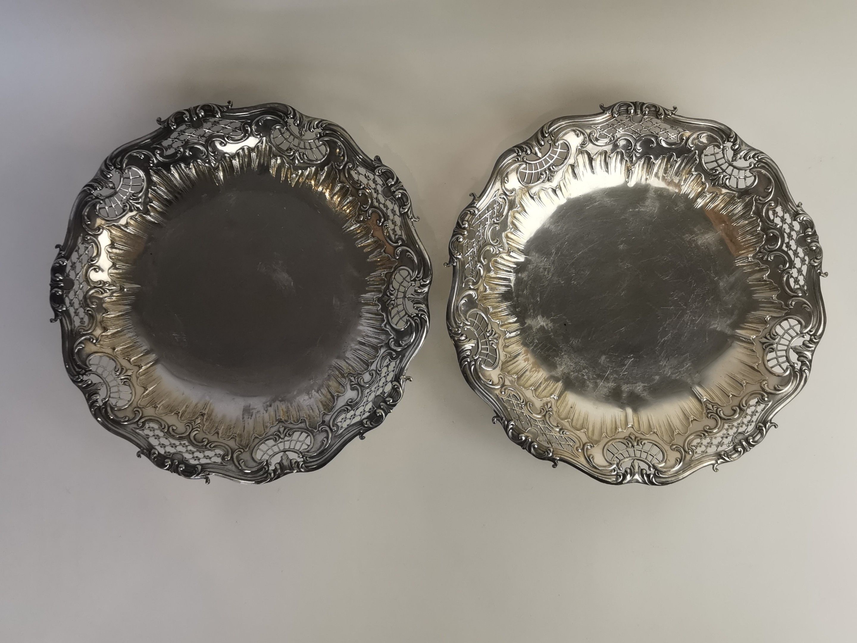 PAIR OF CUPS in silver (925). PARIS, LAPAR, ap. 1838 (Minerve). Standing on a circular foot, the design is outlined with filets and leafy clasps, openwork with crosses in rocaille cartouches, fleurons and rocaille frieze. Marked L. LAPAR / PARIS on the rim. Diam. 23.2 cm; Weight 677 g.