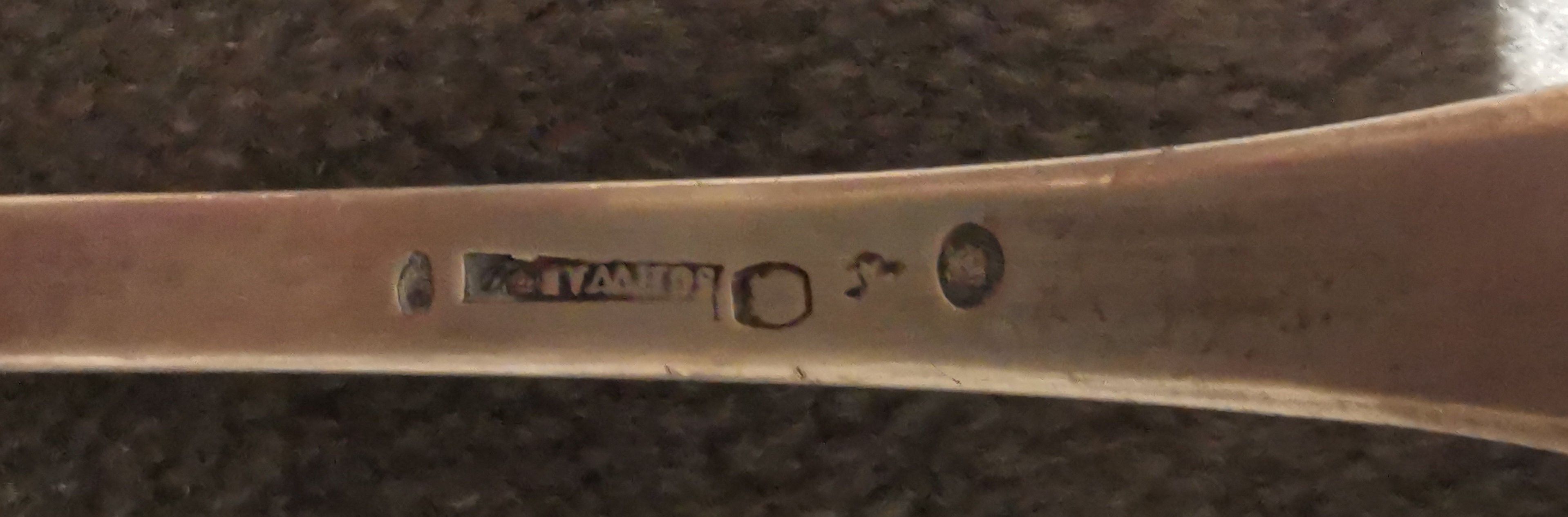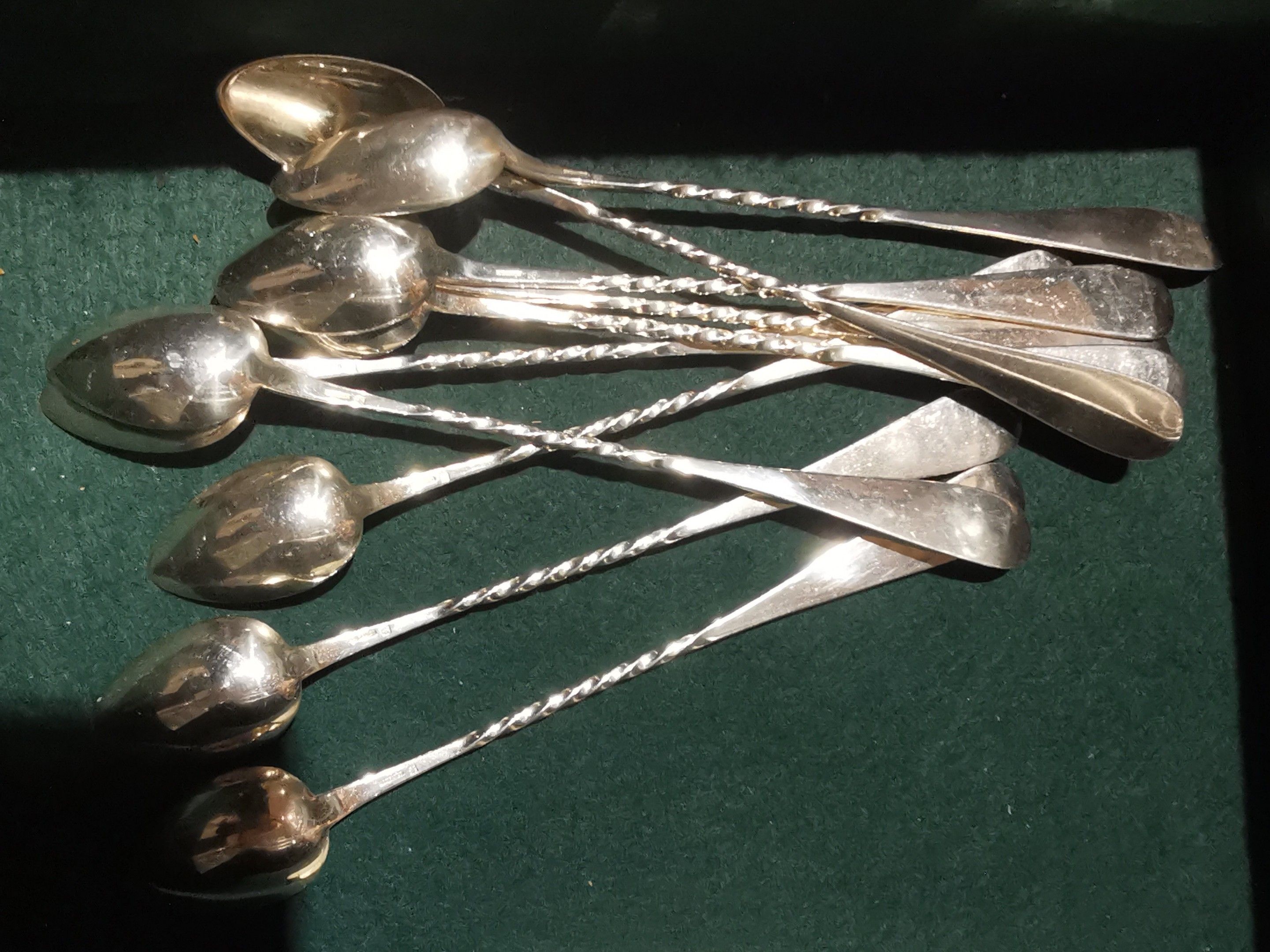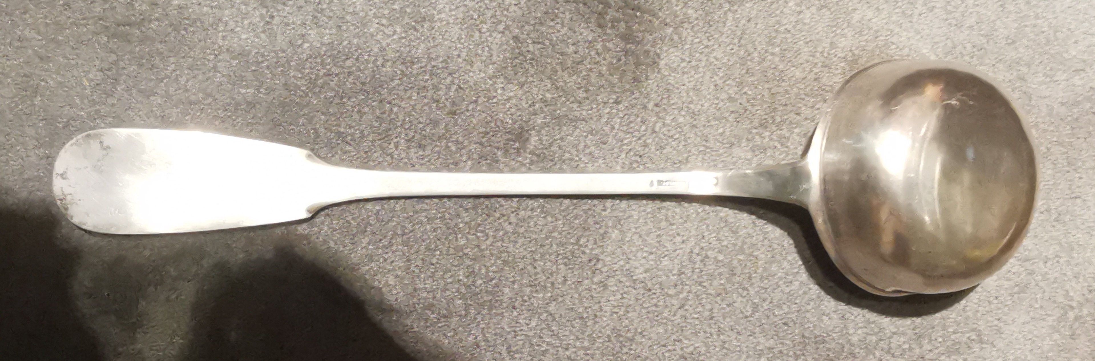 One silver LOUCHE (800) and a SERIES OF TWELVE metal FRUIT JUICE SPREADERS.