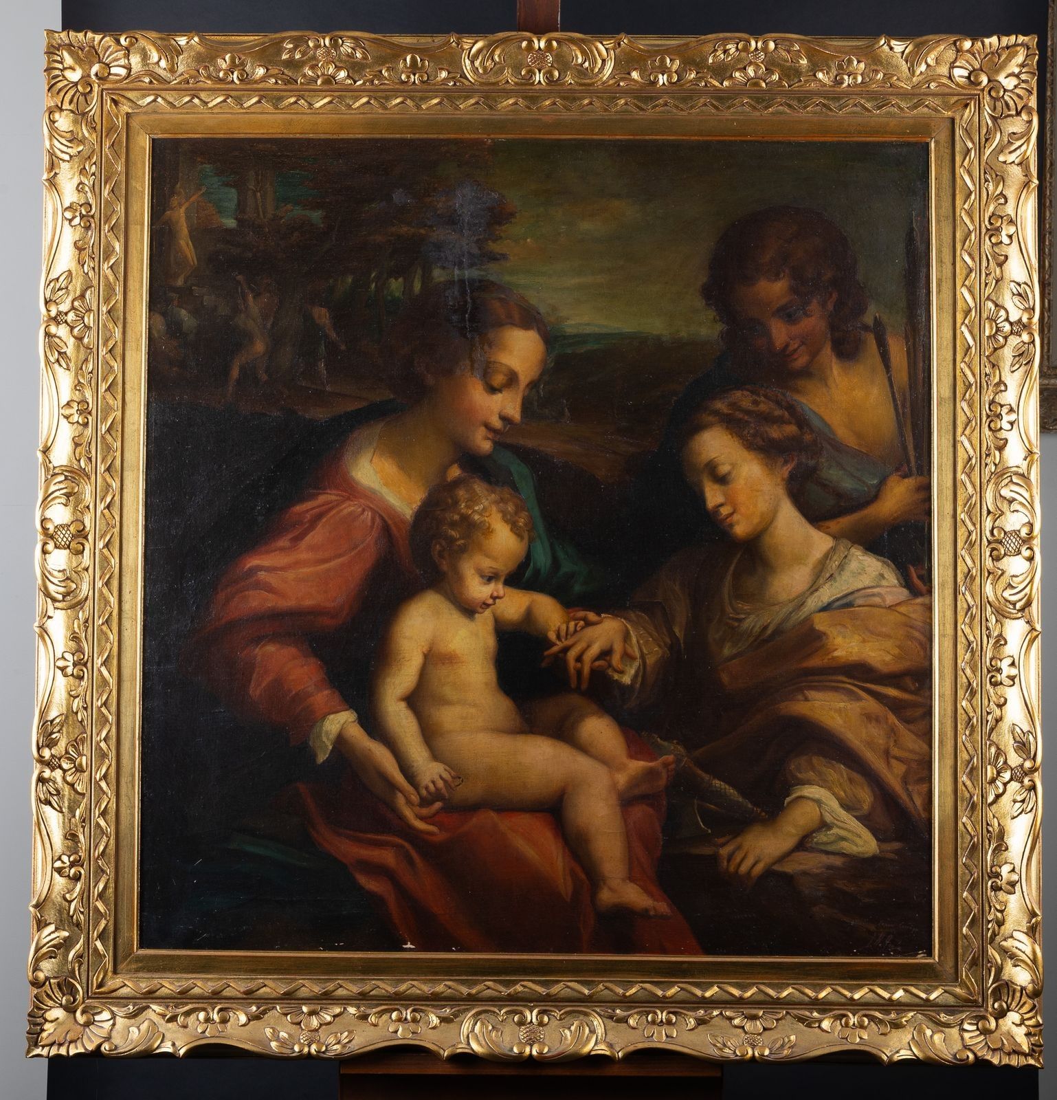 The mystical marriage of Saint Catherine and Saint Sebastian against a landscape background