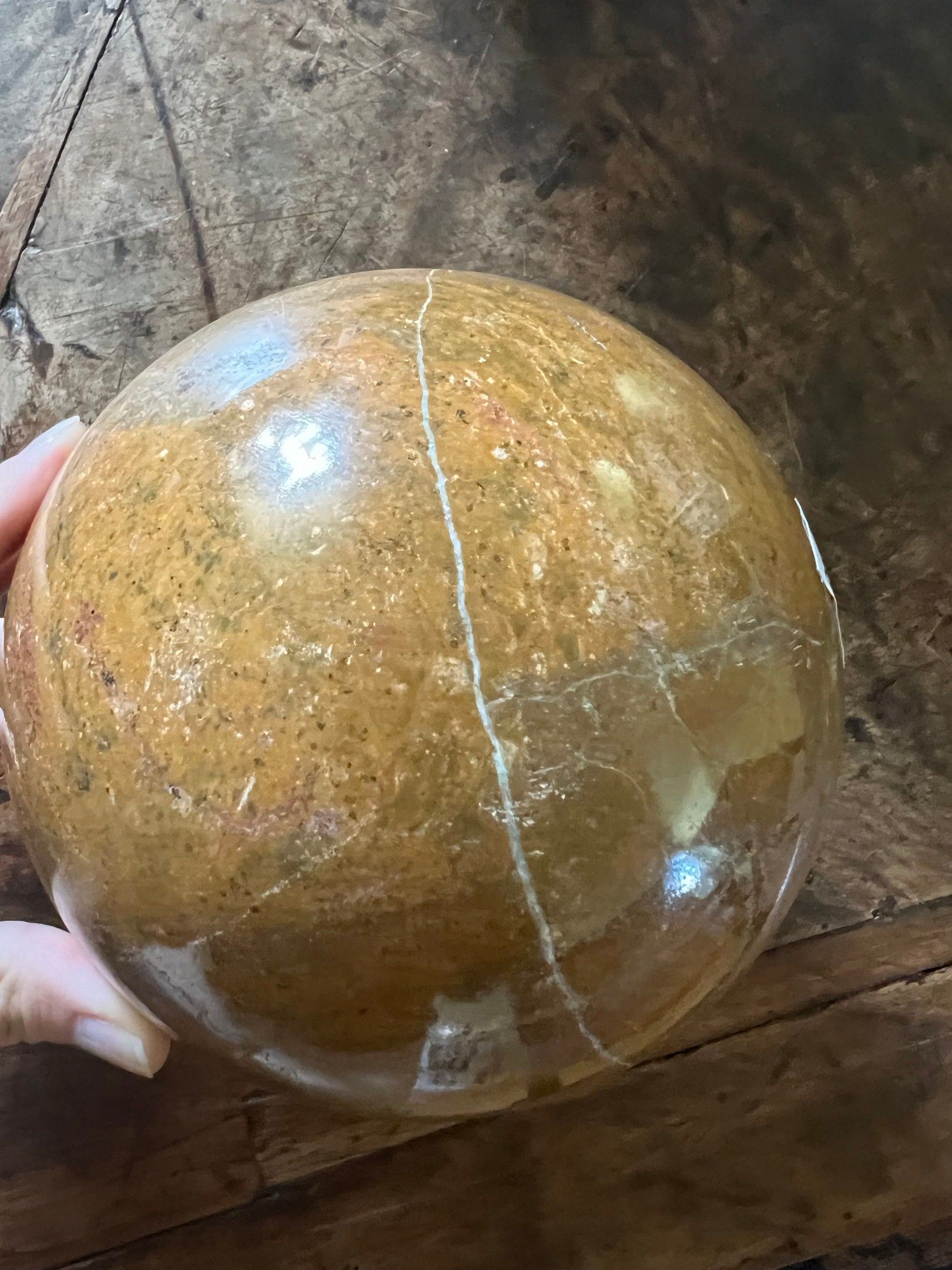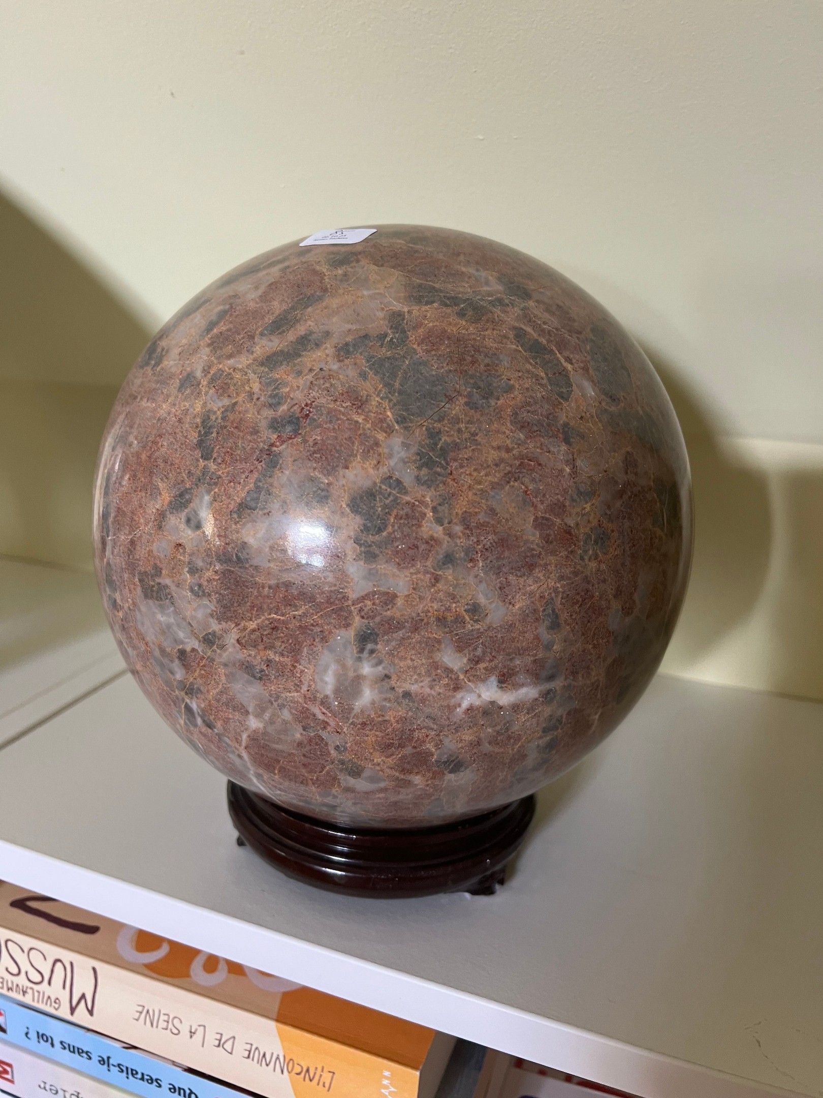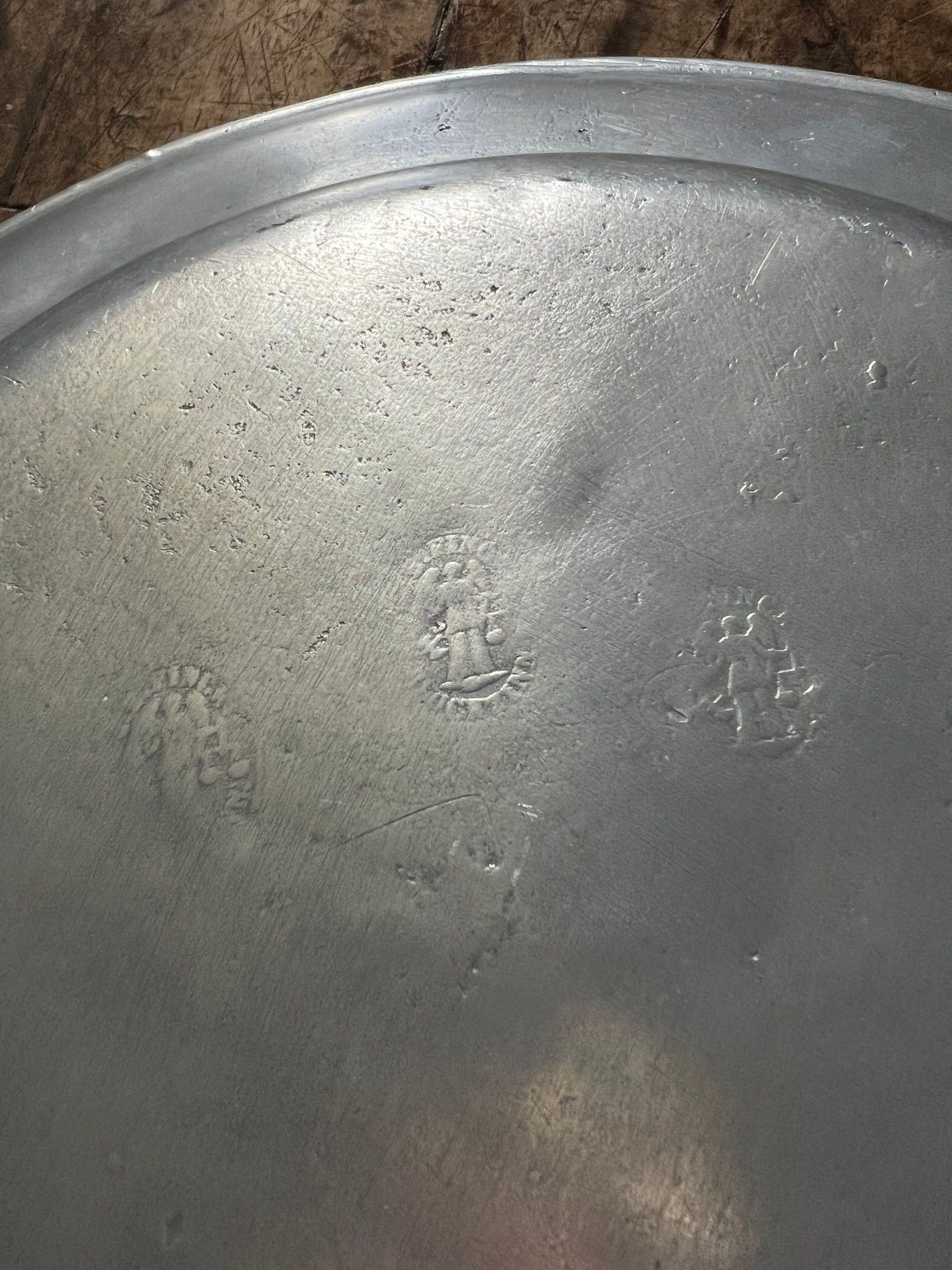 Set comprising four pewter dishes (dents and restorations) and three stone spheres