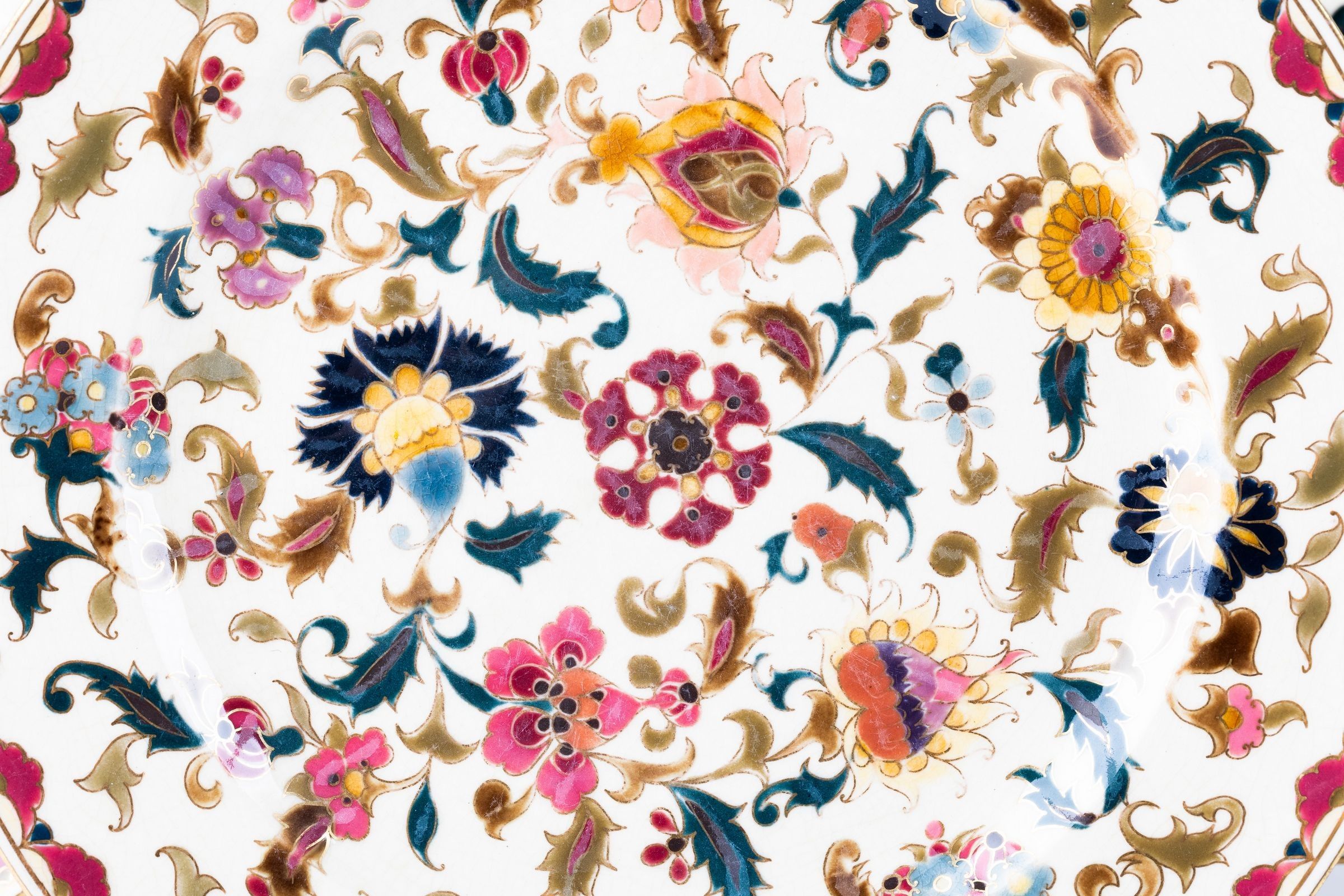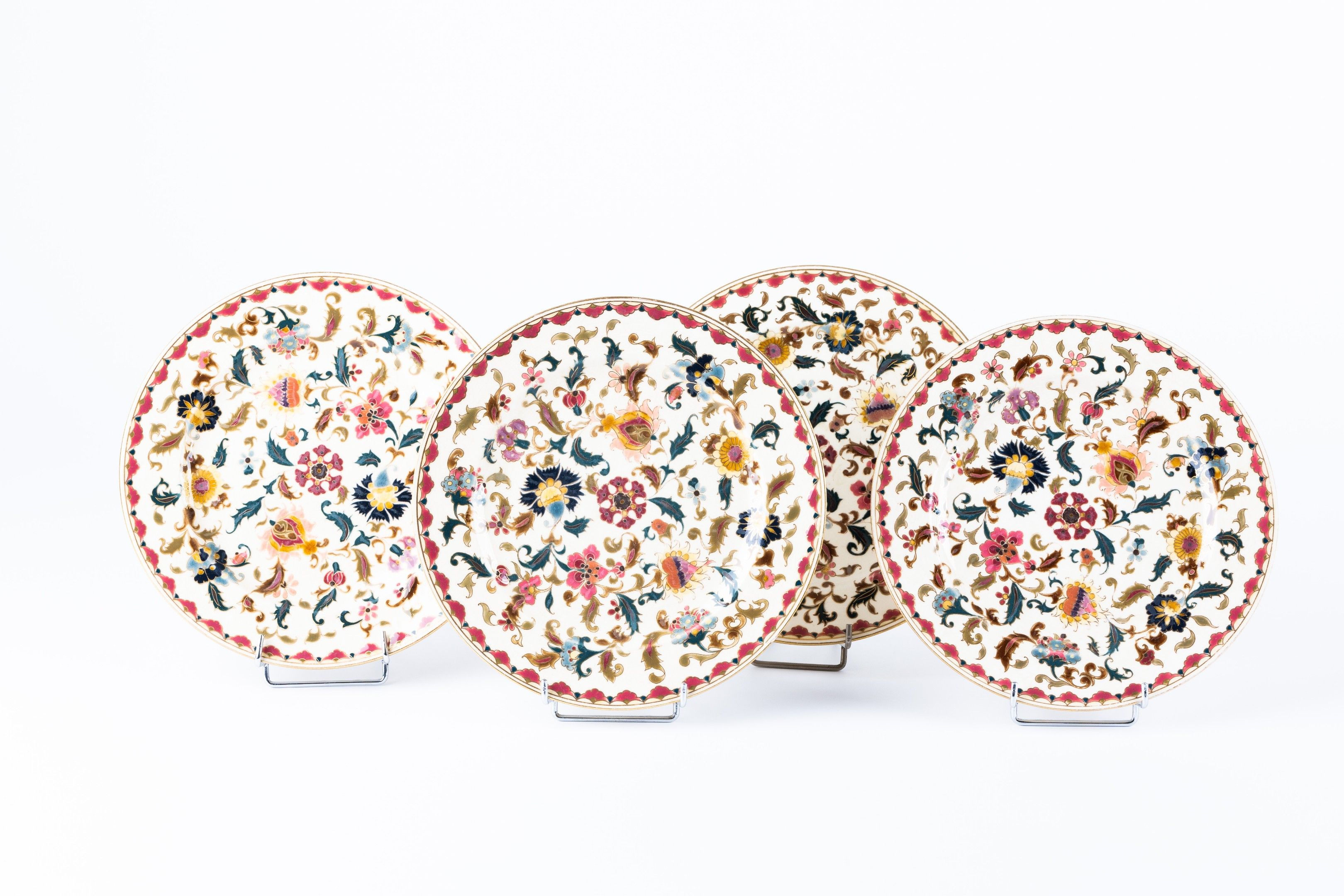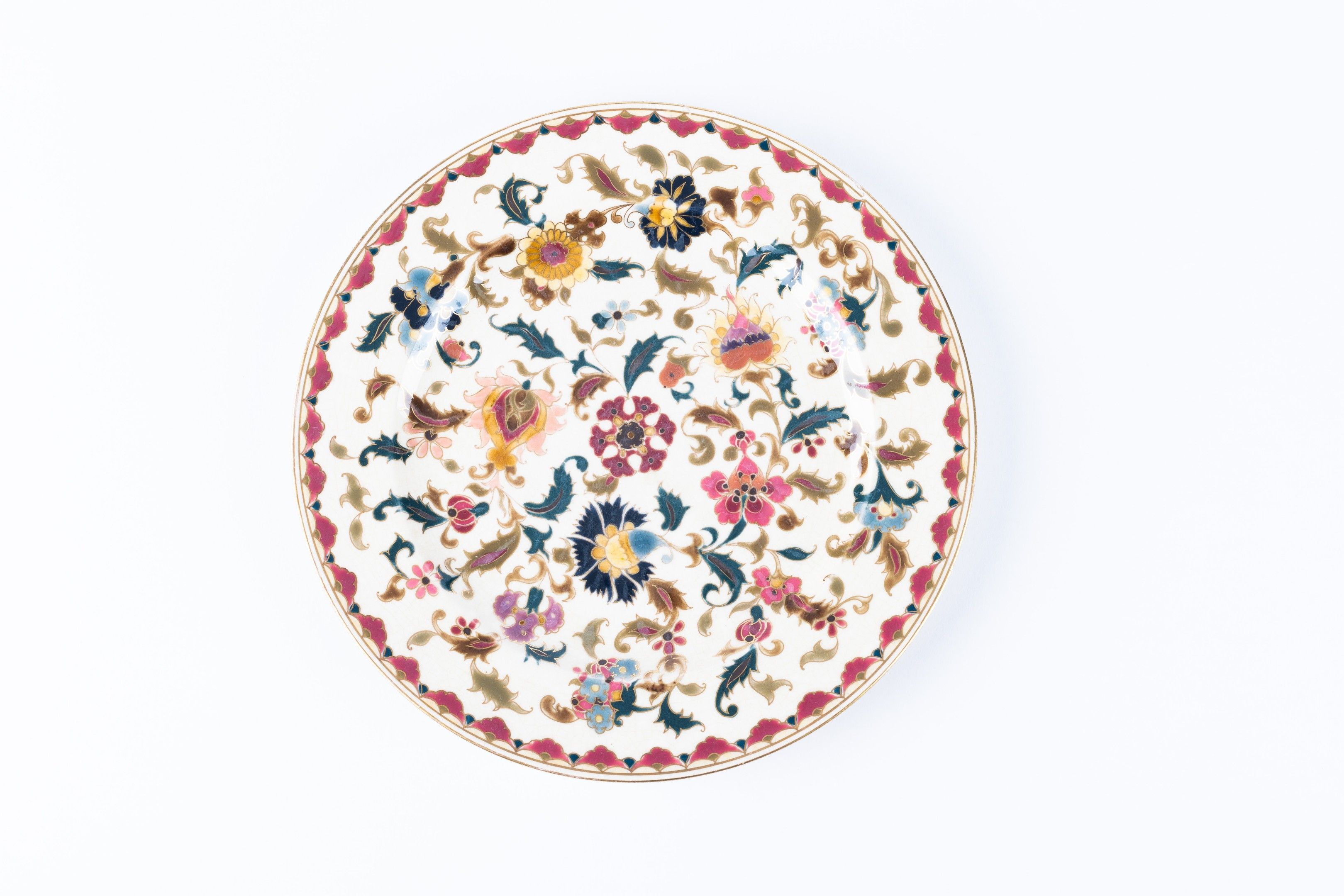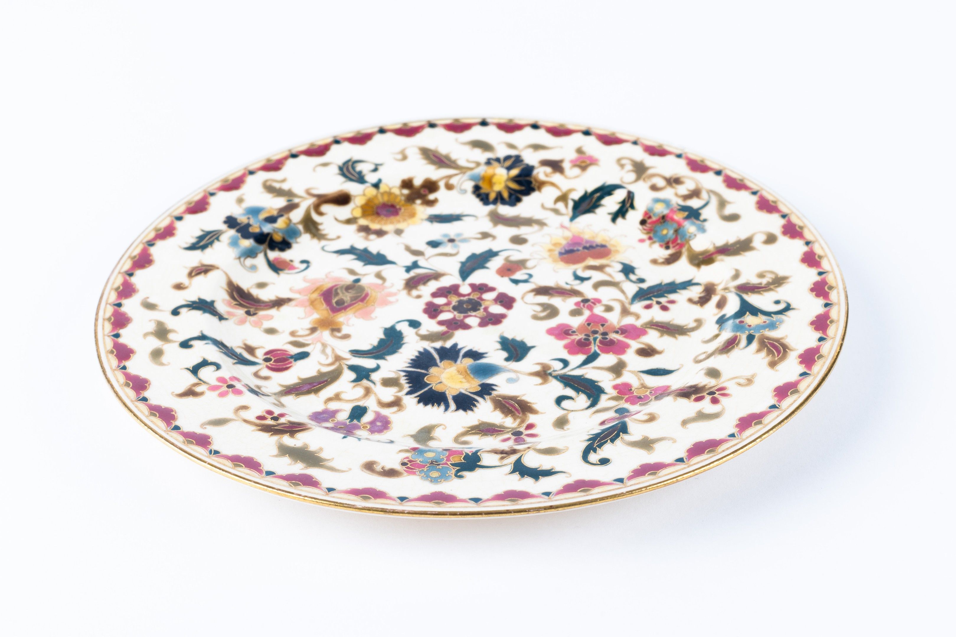 ZSOLNAY Set of four polychrome ceramic plates with gold high…